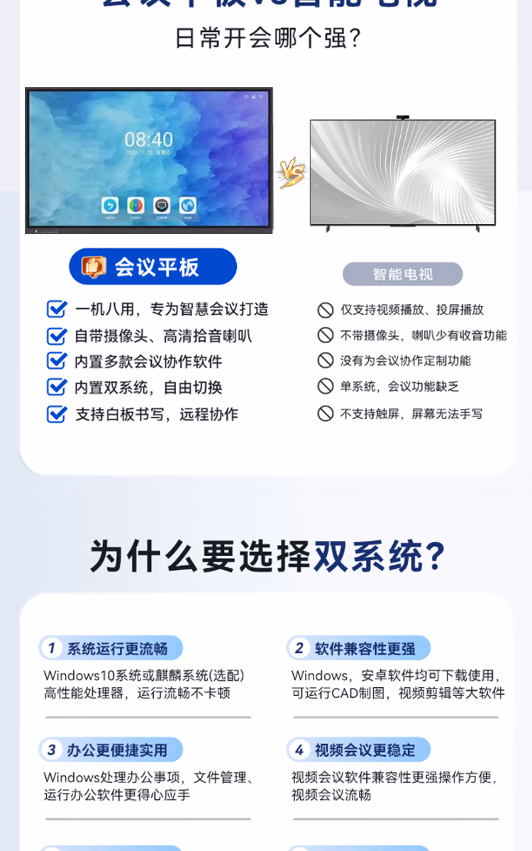 > 希沃电子白板seewoxr会议一体机平板触摸屏多媒体教学触屏培训移动电视触摸 100英寸 【移动推车+触控笔】 安卓+电脑双系统【8+256G】高配