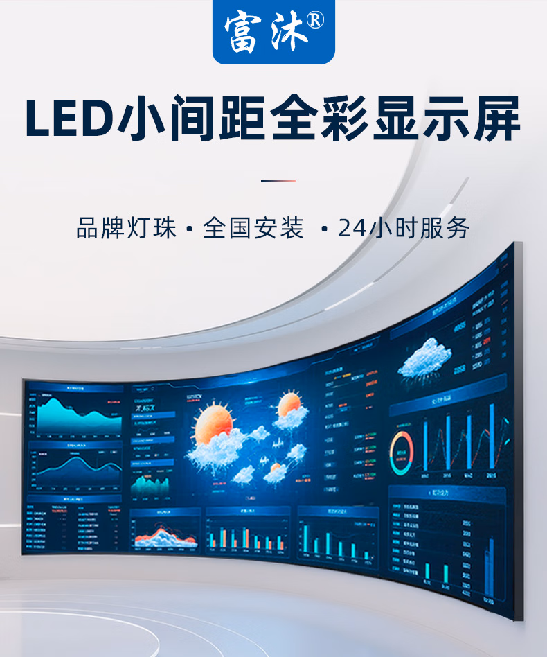 > 富沐 全彩led显示屏大屏幕广告屏户外室内p1.53模组小间距会议展厅无缝拼接大屏幕直播舞台背景