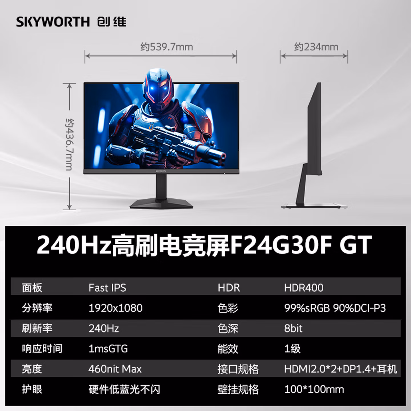 > 创维27英寸 220Hz 1ms 快速液晶 FastIPS HDR10 光感屏变 硬件低蓝光 原生200Hz 电竞显示器 F27G40F
