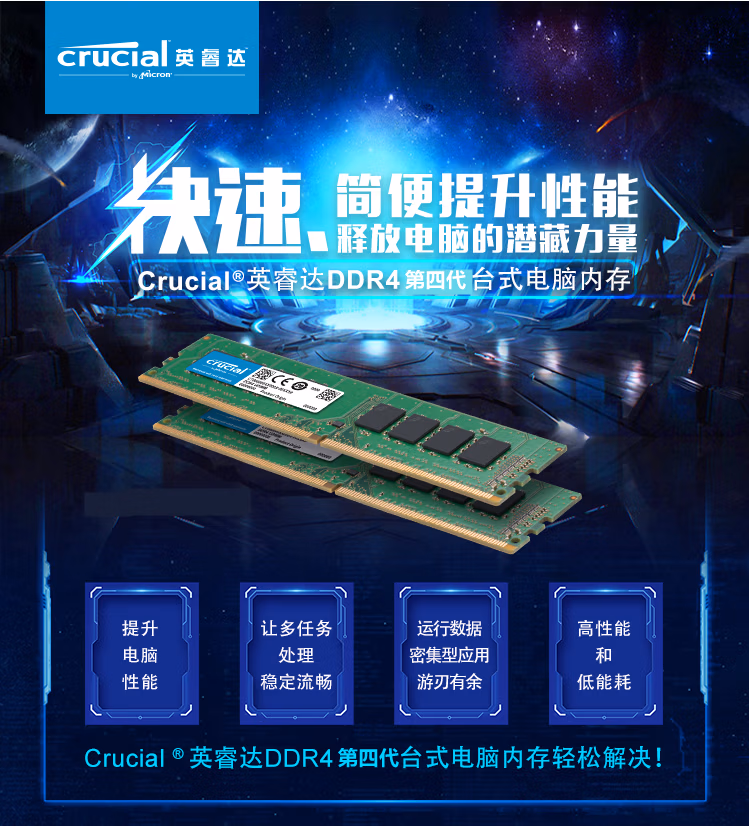 > 英睿达(crucial) 镁光 4G/8G/16G DDR4 台式机电脑内存条兼容联想华硕戴尔惠普等 16G DDR4 3200台式机内存