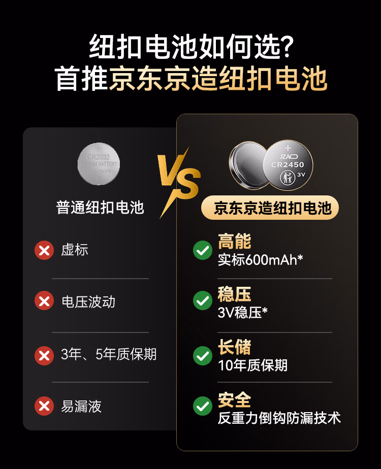 > 京东京造 CR2032纽扣电池6粒装 3V锂电池 适用大众奥迪宝马奔驰等汽车钥匙手表遥控器电脑主板对讲机
