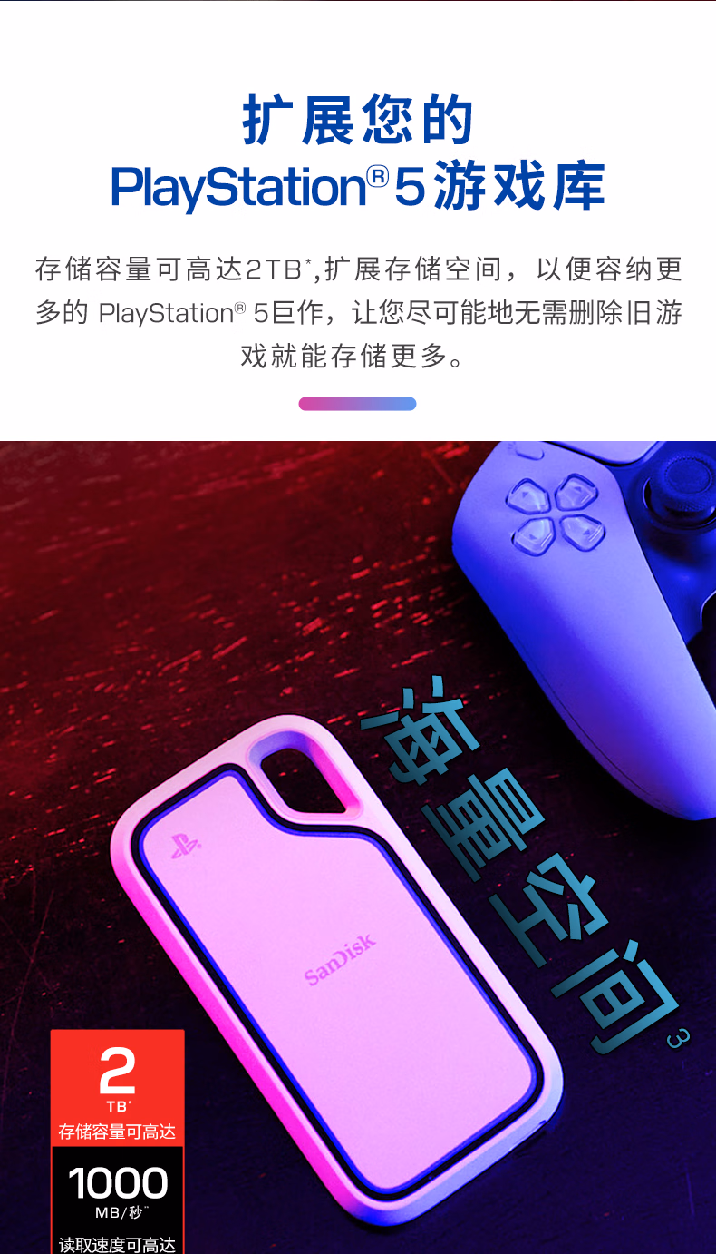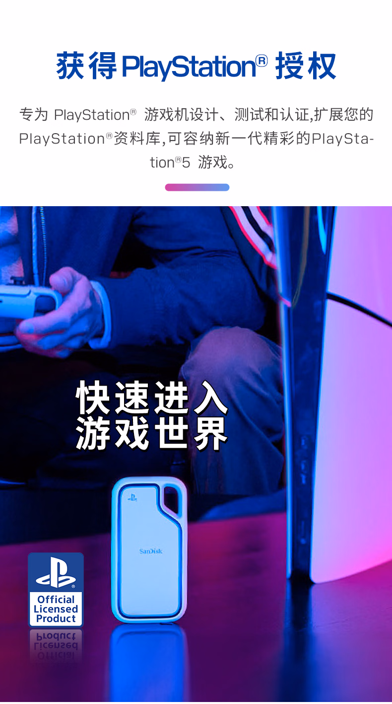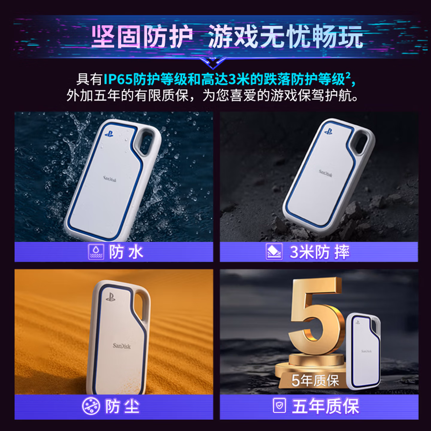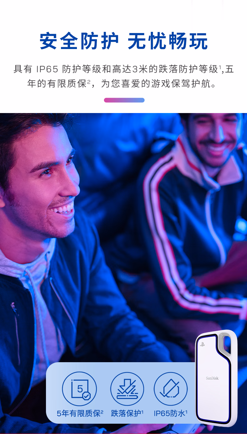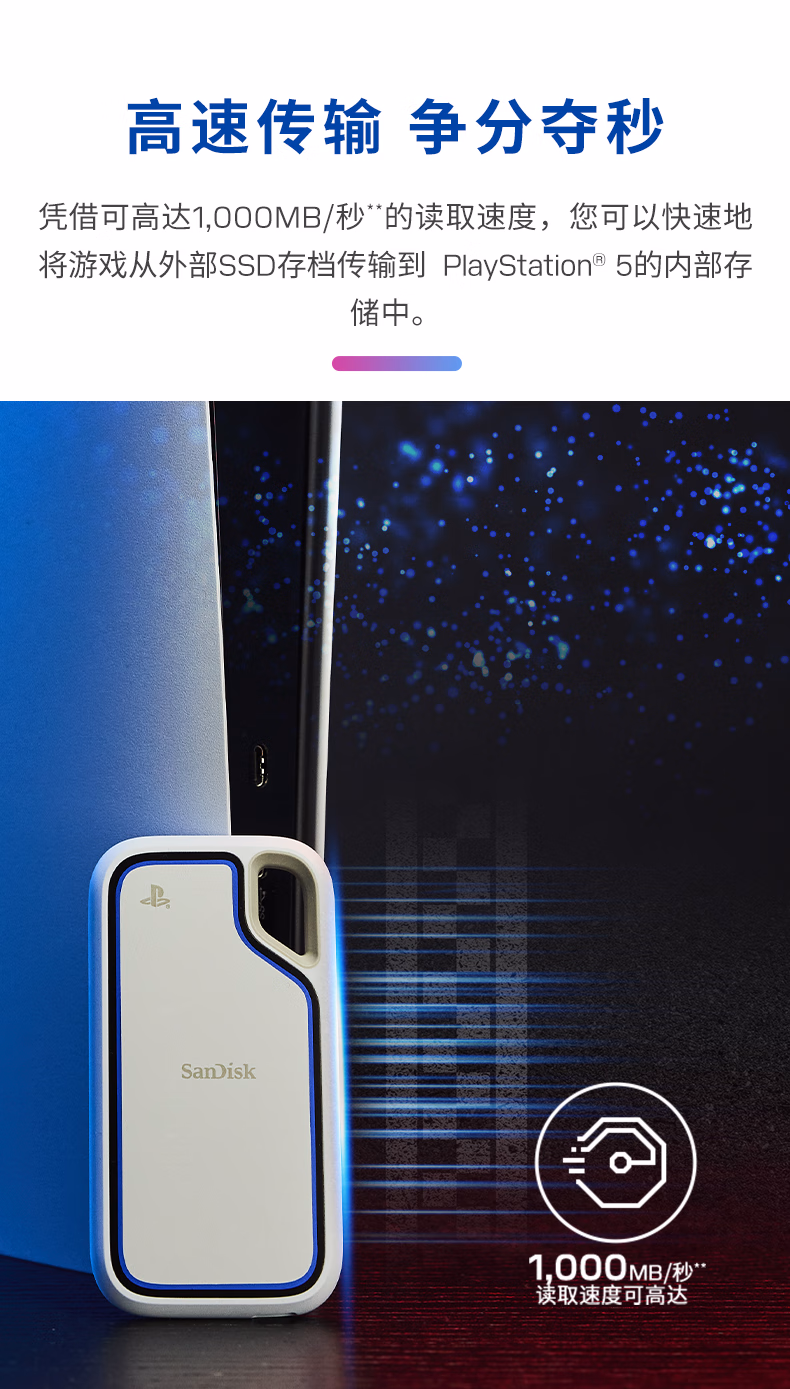 > 闪迪(SanDisk)1TB Type-c USB3.2 移动固态硬盘(PSSD)E62 PS5游戏机授权版 手机直连笔记本电脑外接 3米防摔