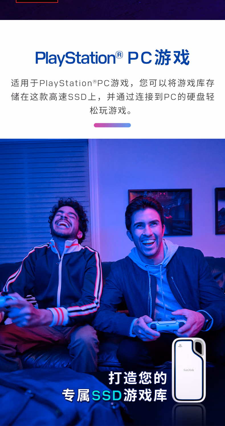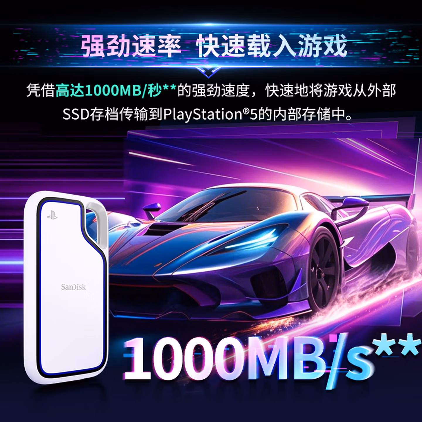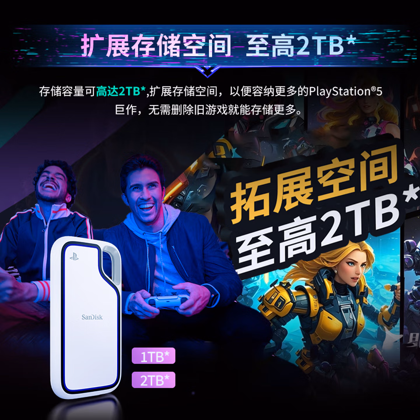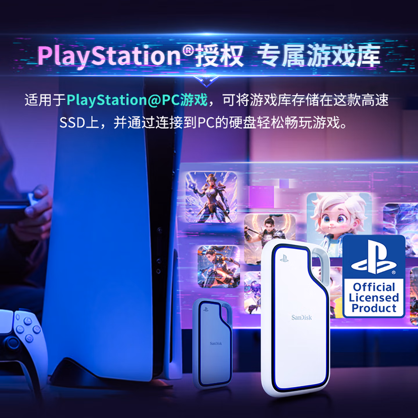 > 闪迪(SanDisk)1TB Type-c USB3.2 移动固态硬盘(PSSD)E62 PS5游戏机授权版 手机直连笔记本电脑外接 3米防摔