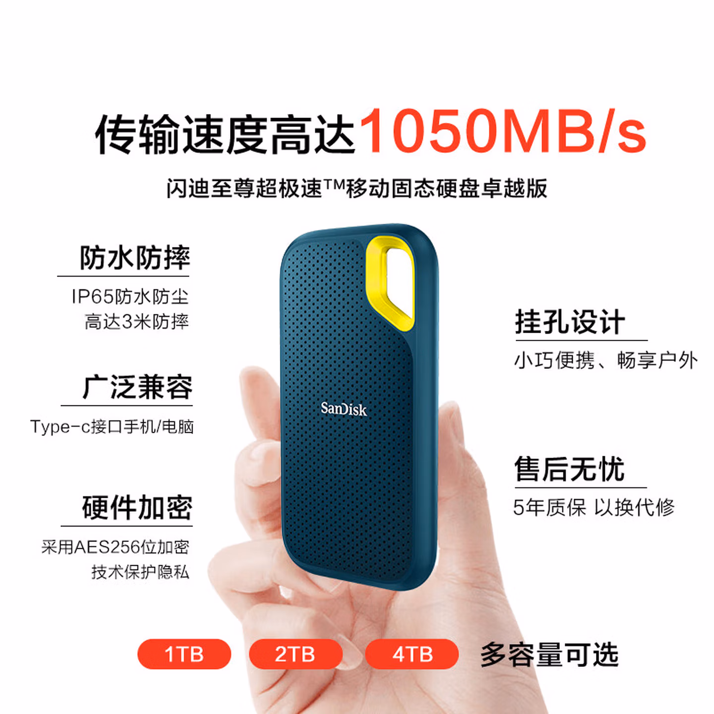 闪迪(SanDisk)2TB Nvme移动固态硬盘(PSSD)E61至尊极速卓越版松柏青SSD 读速1050MB/s 手机直连笔记本外接硬盘