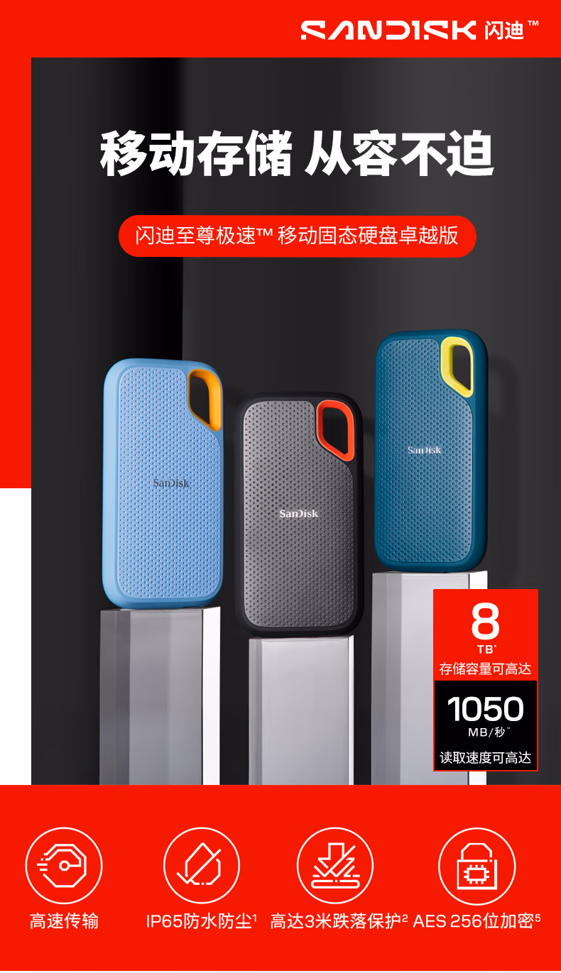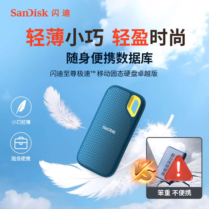 > 闪迪(SanDisk)2TB Nvme移动固态硬盘(PSSD)E61至尊极速卓越版松柏青SSD 读速1050MB/s 手机直连笔记本外接硬盘