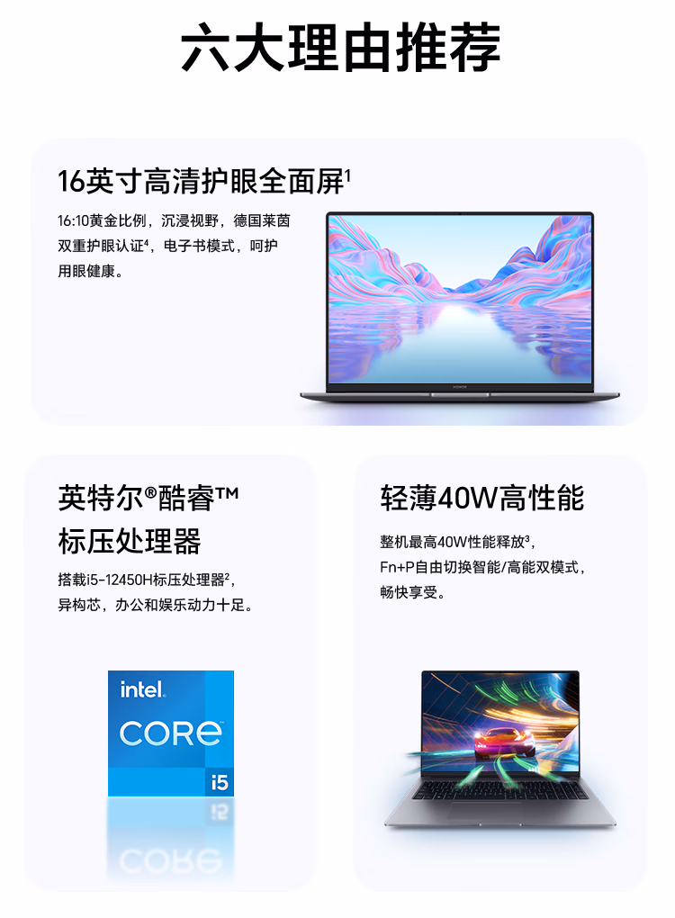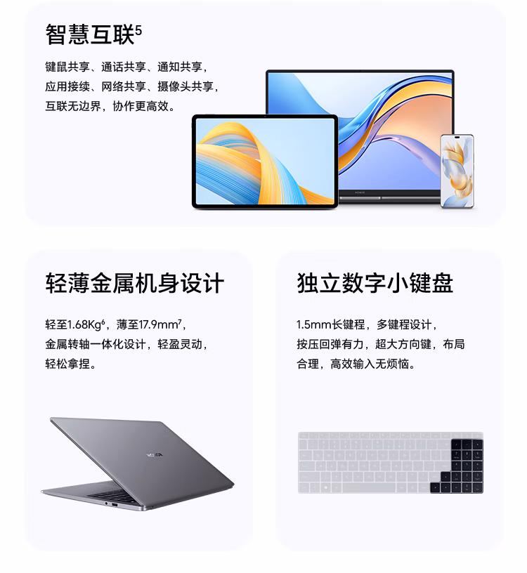 > HONORi5-12450H荣耀笔记本电脑MagicBook X 16 2023 12代酷睿标压i5 16G 1T 100%sRGB高色域 轻薄本 大电池 手机互联(16英寸 i5-12450H/1T/银)