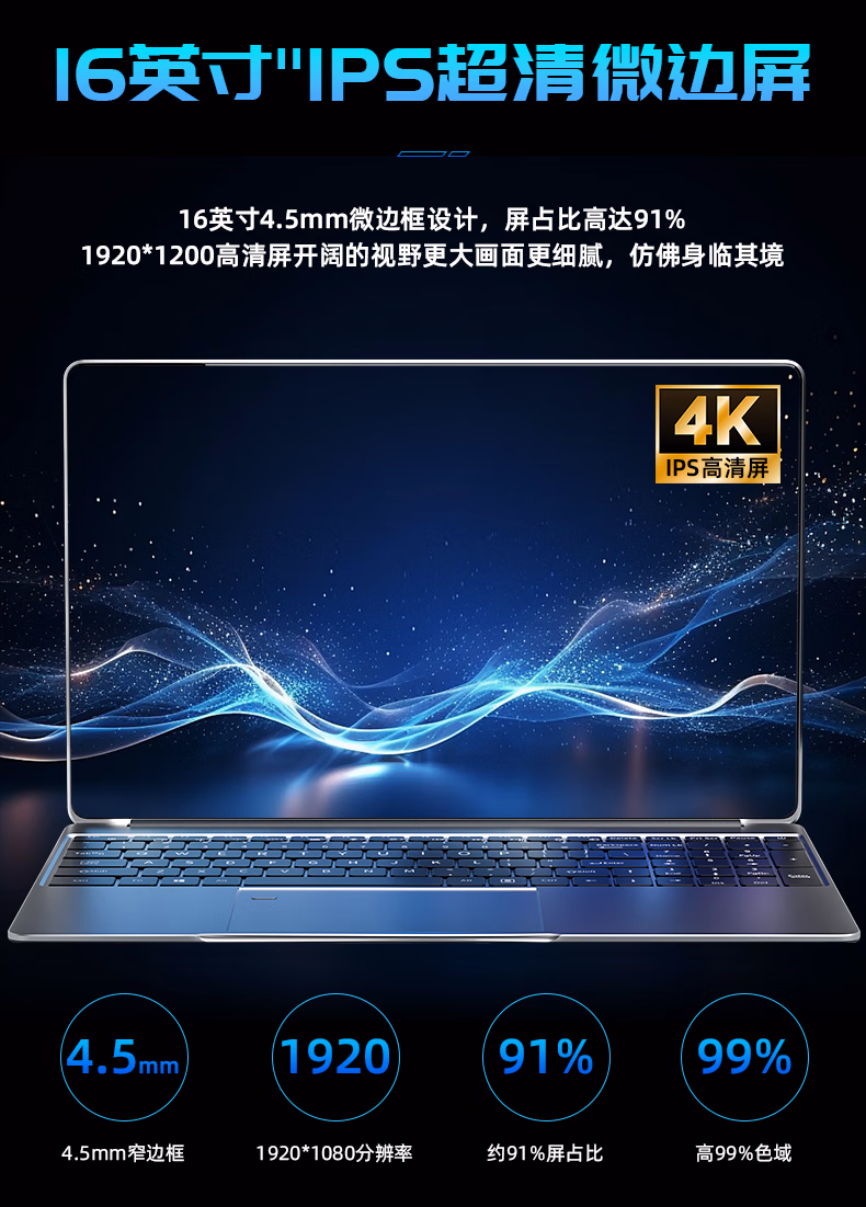 英特尔16Pro[全面屏+抗蓝光+指纹]轻薄