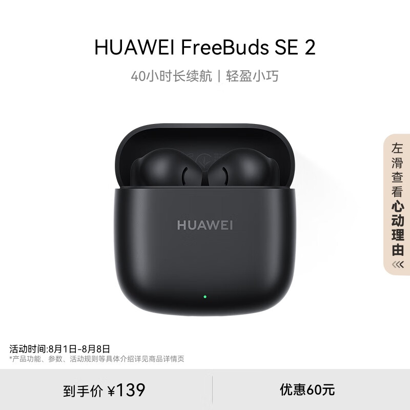 > 华为长续航蓝牙耳机 FreeBuds SE 2无线耳机 40小时长续航 快速充电 蓝牙5.3适用于苹果/安卓手机 白