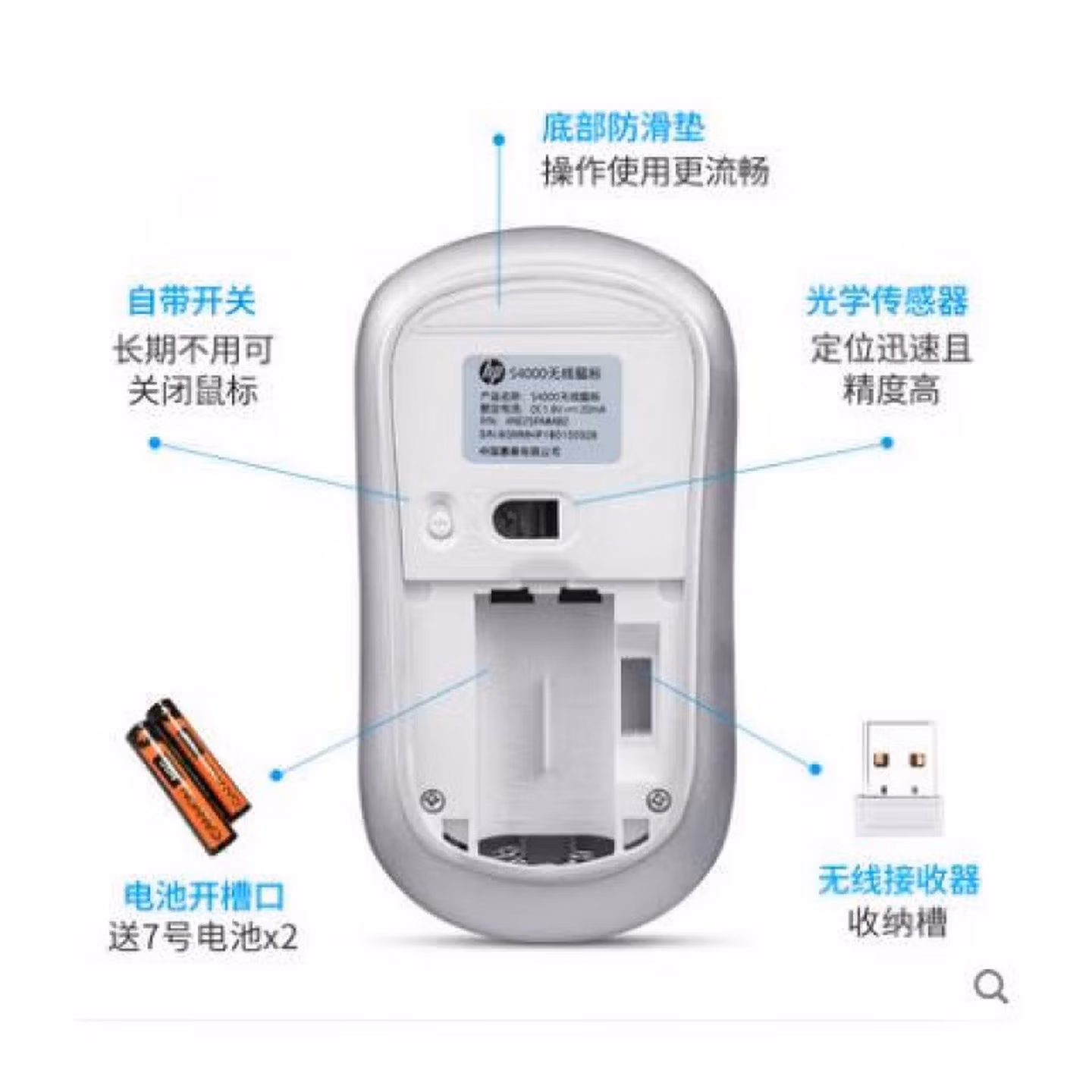 > 惠普(HP)S4000鼠标 无线鼠标 办公鼠标 轻音微声小巧鼠标 省电便携电脑笔记本办公鼠标