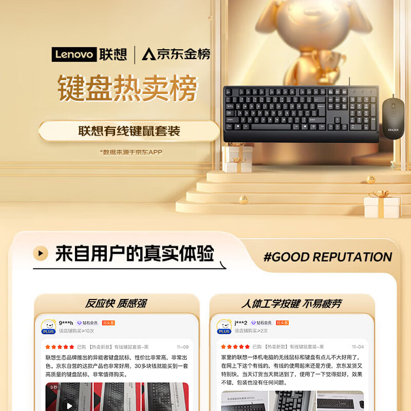> 联想生态异能者 有线键盘鼠标套装 键鼠套装鼠标垫 全尺寸防泼溅 商务办公台式机/小新笔记本适用 黑色