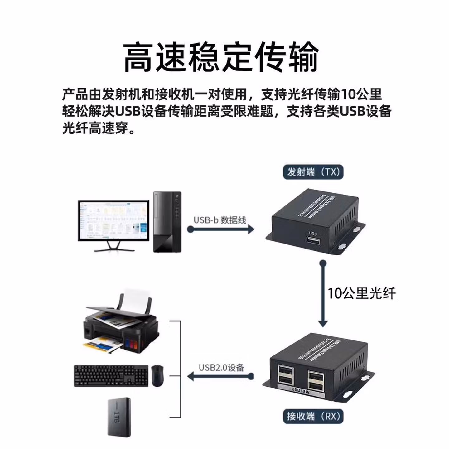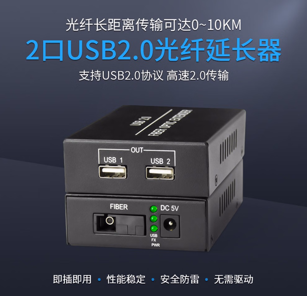 常臻(CHANGZHEN) USB3.2光端机兼容USB3.0 USB2.0转光纤收发器延长器支持摄像头打印机U盘 USB2.0光端机-FC接口