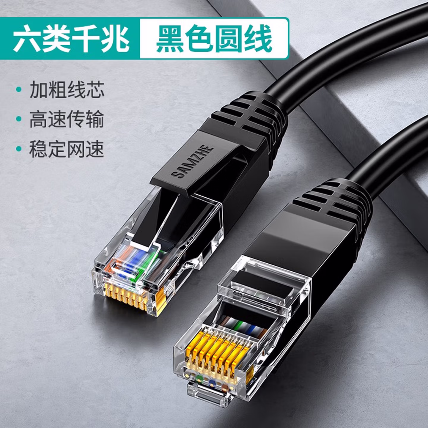 山泽六类网线 CAT6类千兆高速网络连接线工程家用电脑宽带监控电脑网络8芯双绞成品跳线 六类白色(圆线) 2米