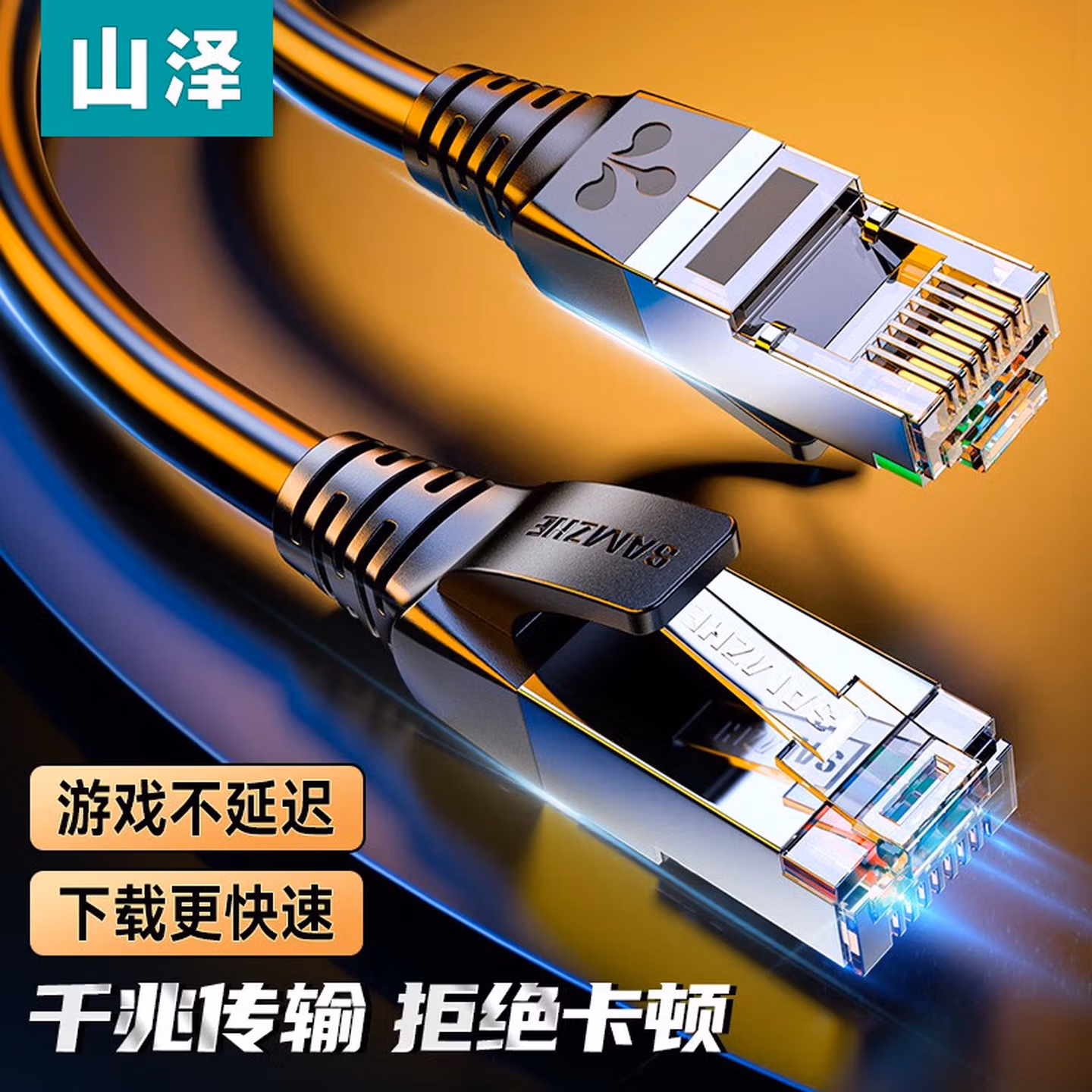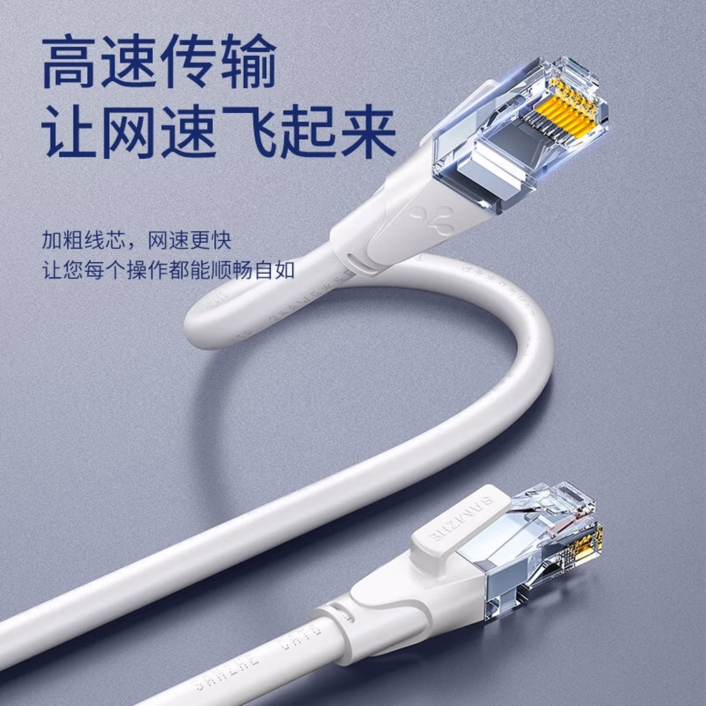 > 山泽六类网线 CAT6类千兆高速网络连接线工程家用电脑宽带监控电脑网络8芯双绞成品跳线 六类白色(圆线) 2米