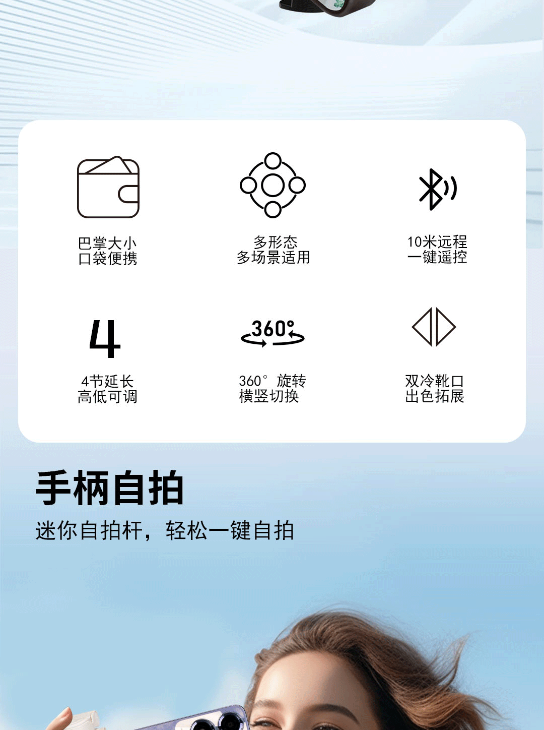 品士【11cm真迷你丨秒变助拍器】自拍杆三脚架蓝牙旅游便携落地手持手机视频拍摄防抖支架华为小米苹果 比手机还小-铝合金杆-充电遥控-秒变助拍器 超迷你超便携【收纳11cm】