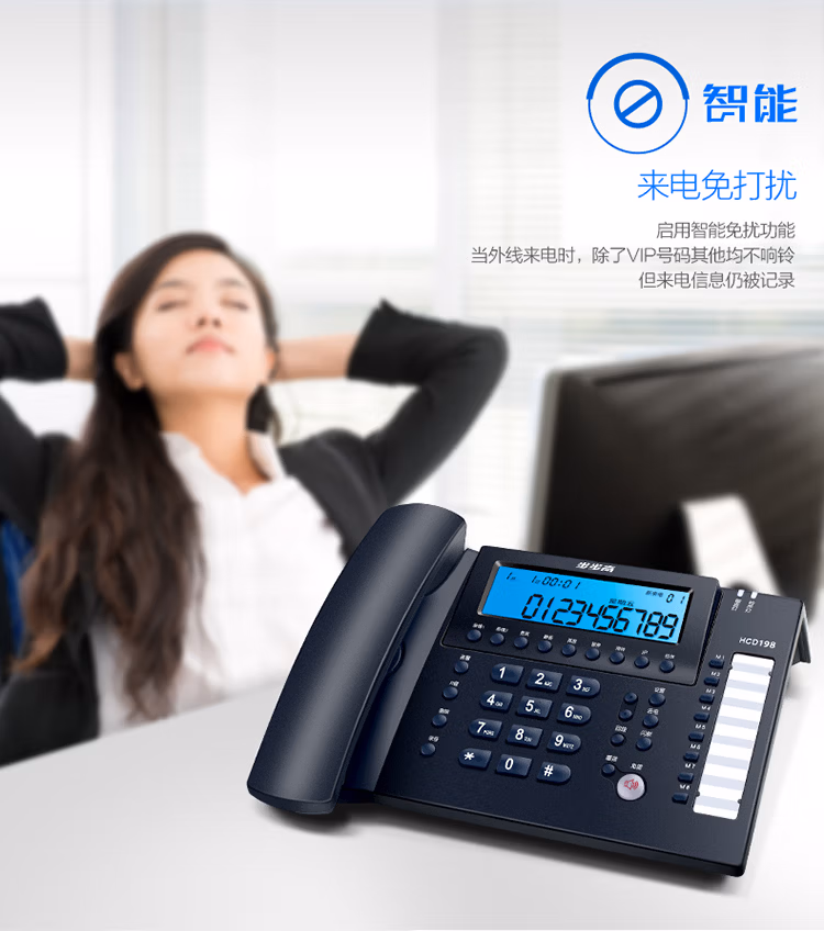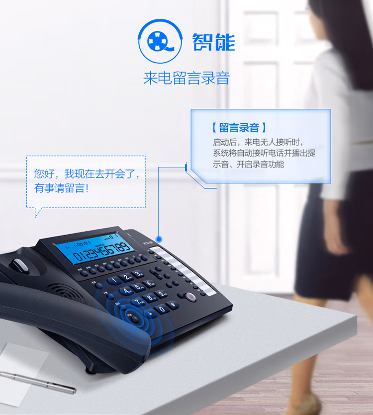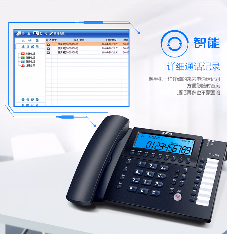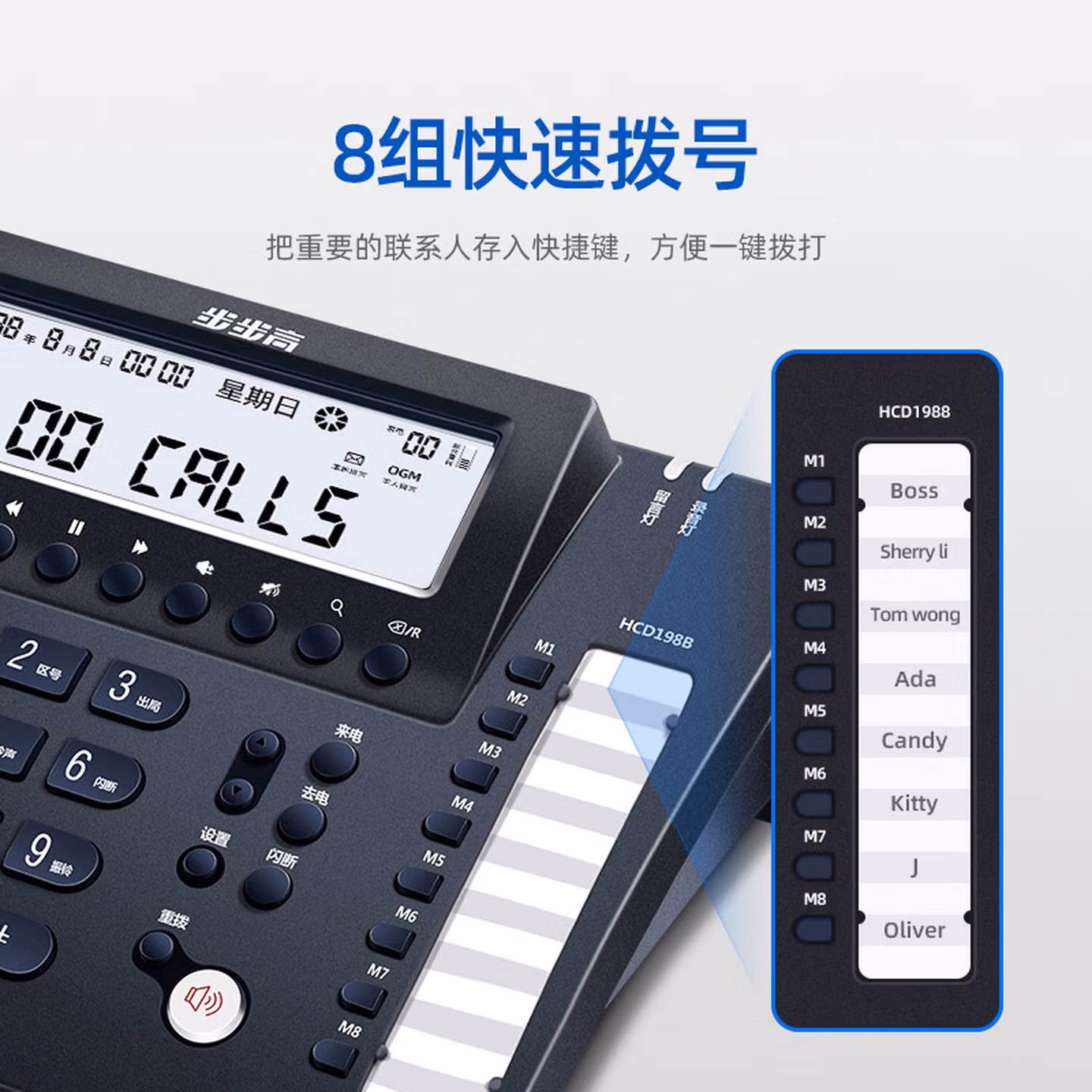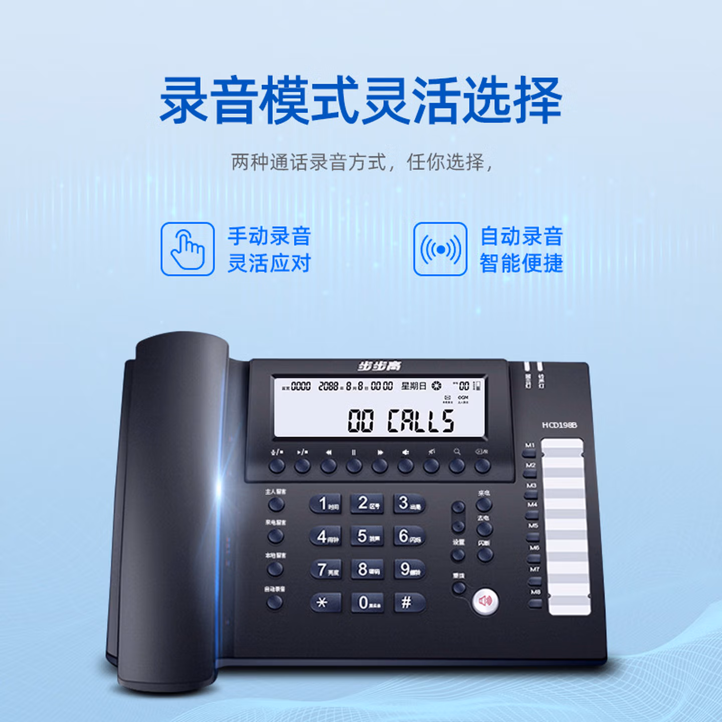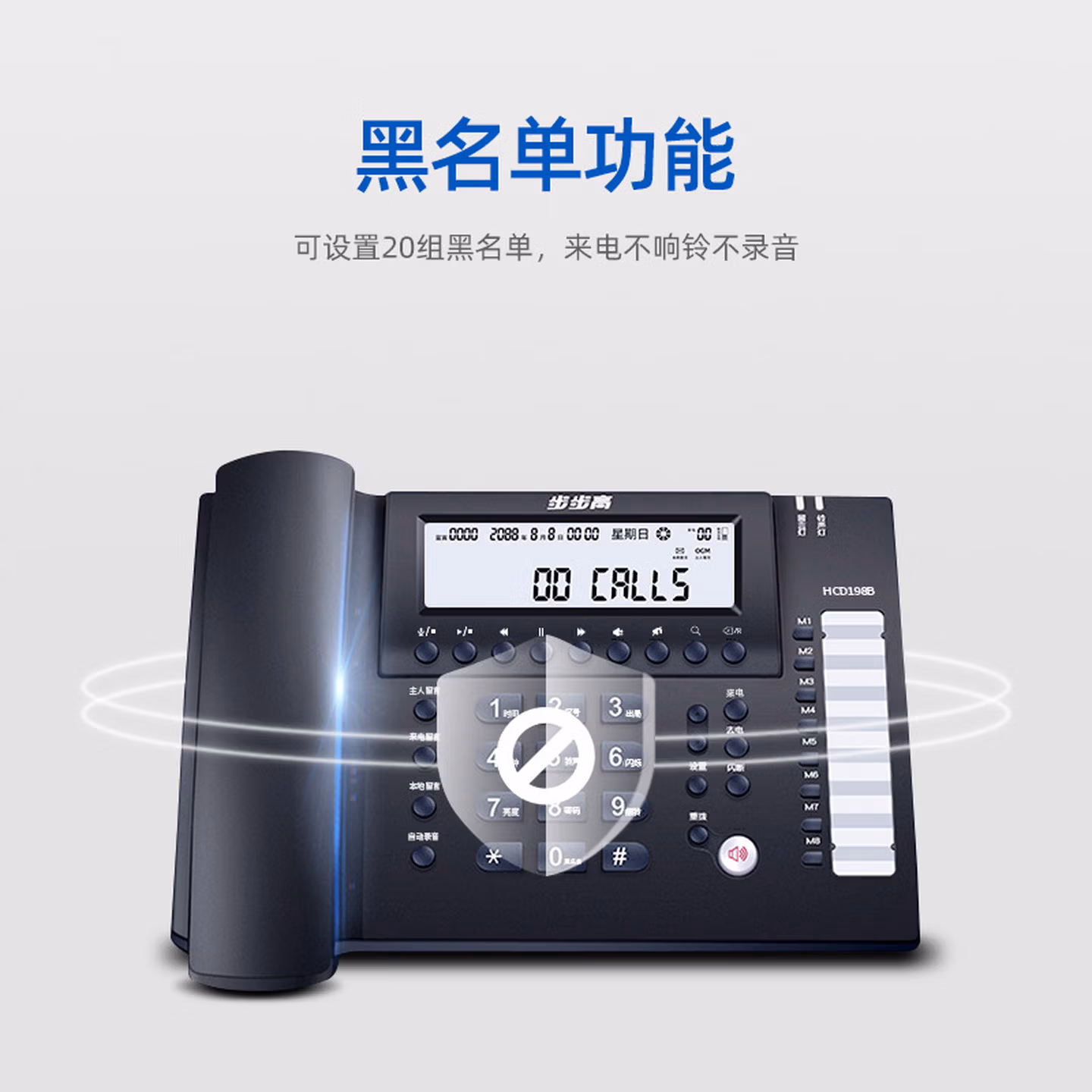 步步高(BBK)录音电话机 固定座机 办公家用 长时录音 内置16G存储 密码保护 HCD198B深蓝