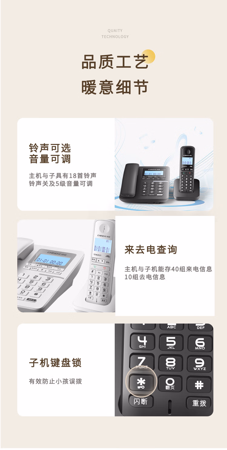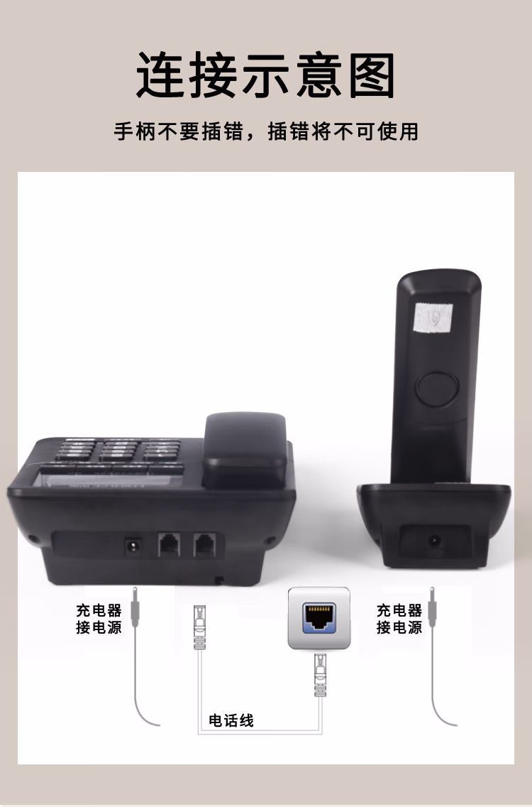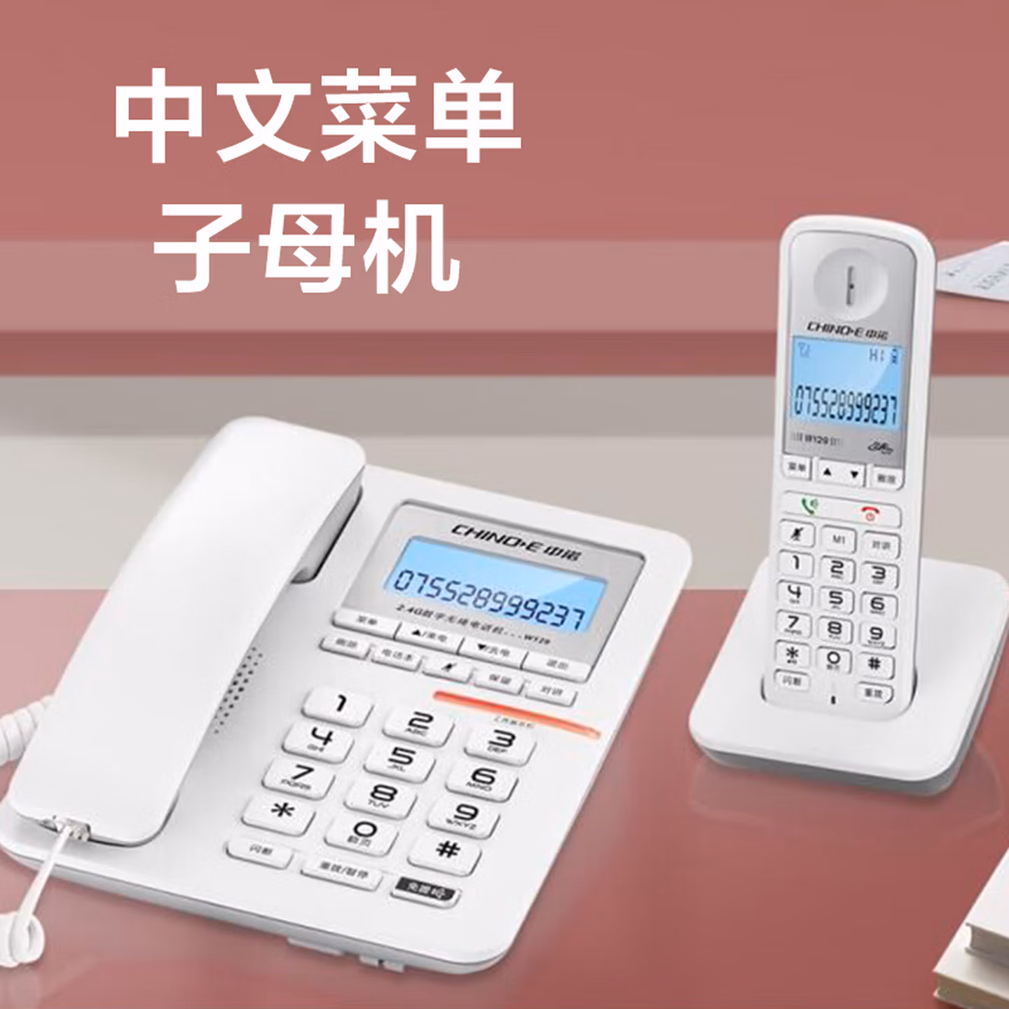 > 中诺数字无绳电话机无线座机子母机内线通话一键拨号免提通话固定电话W129一拖二黑色