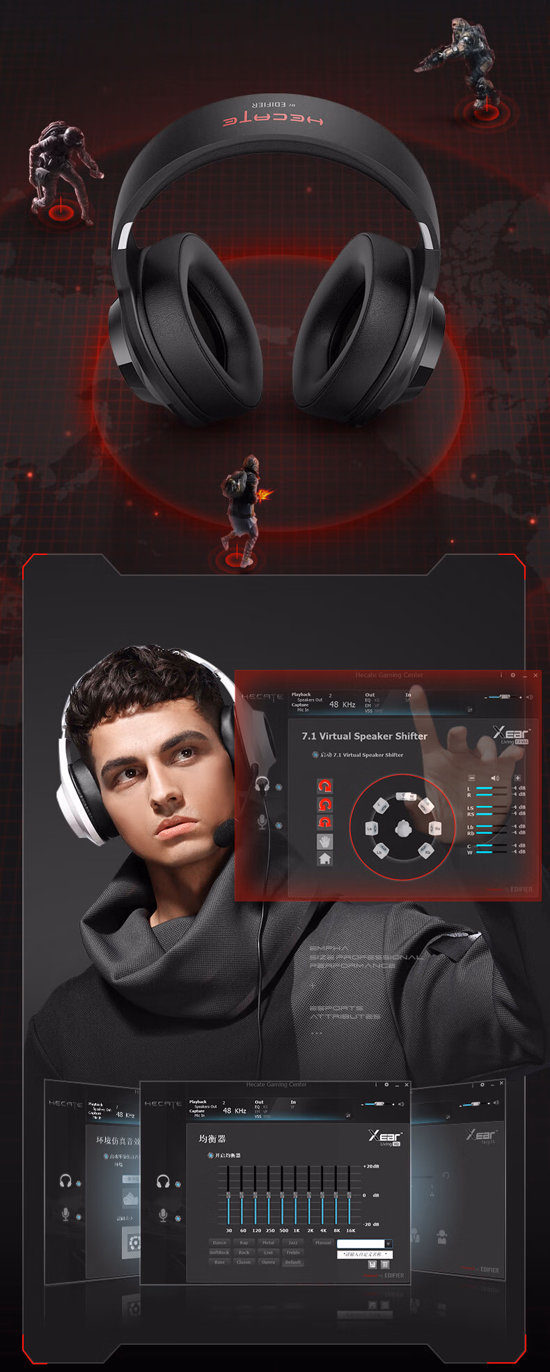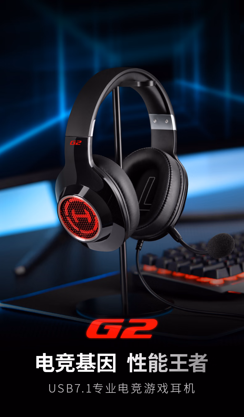> 漫步者(EDIFIER)HECATE G2 7.1声道游戏耳机头戴式带线控电竞耳麦电脑网课办公通用吃鸡csgo英雄联盟 专业版USB黑色