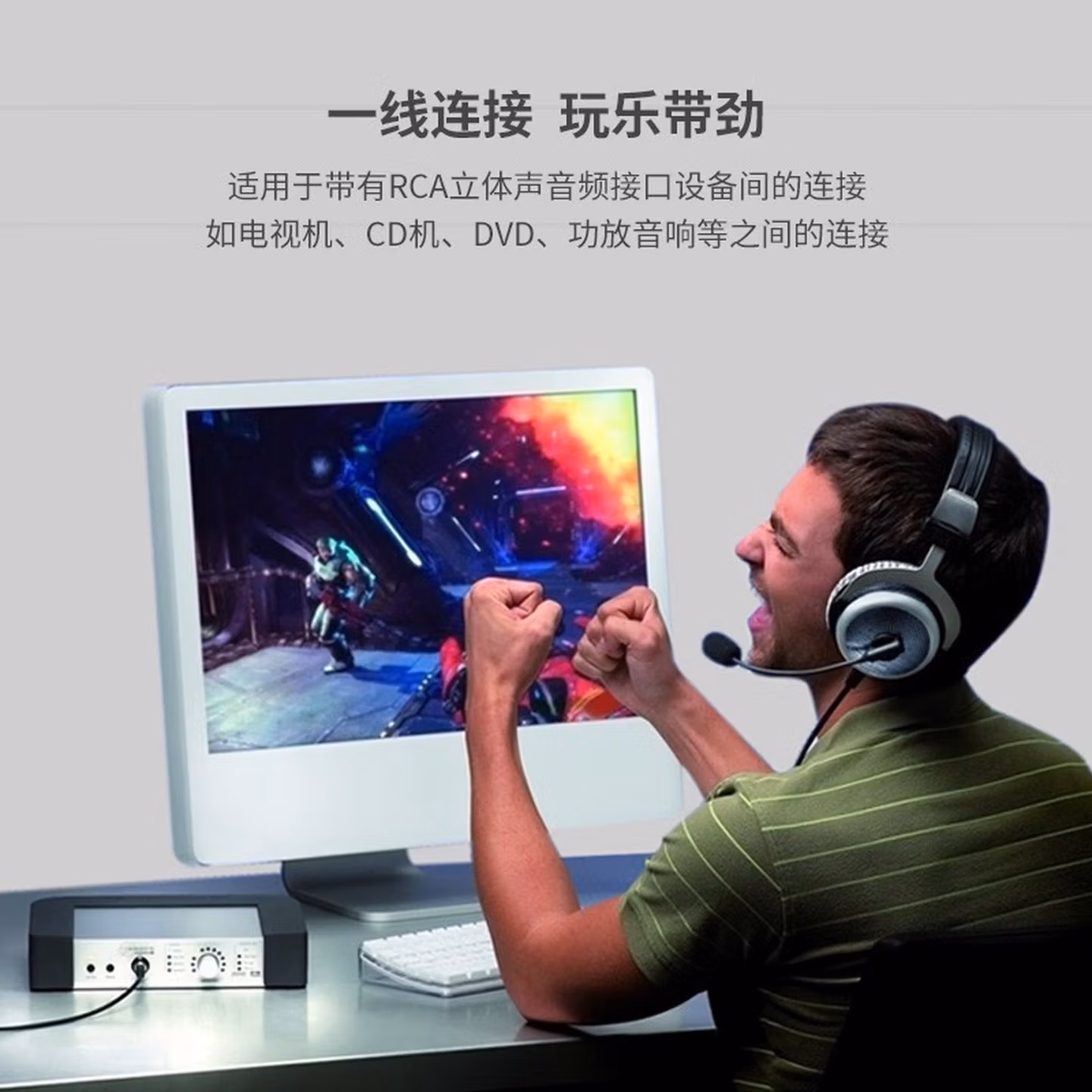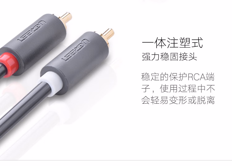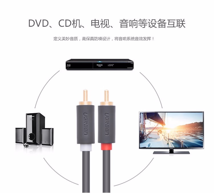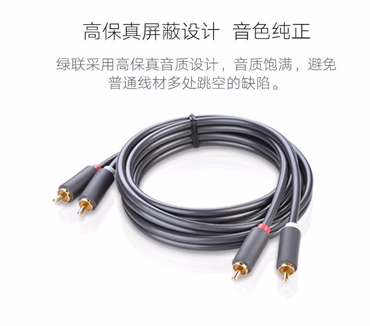 > 绿联(UGREEN)双莲花头音频线2RCA公对公 二对二红白AV音频信号线 DVD电脑电视接音响箱功放线 1米 30747
