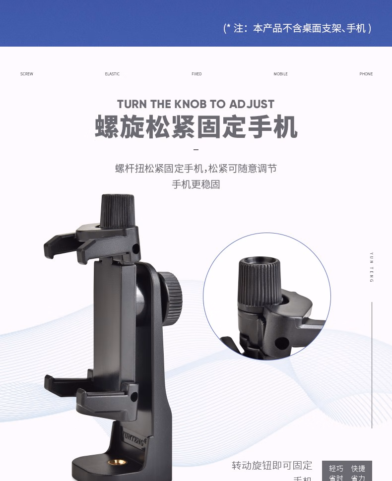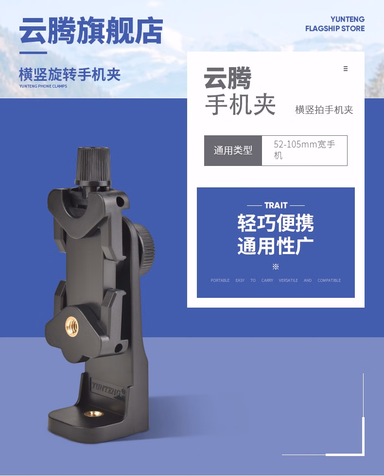 > 云腾横竖拍旋转手机夹通用1/4螺丝三脚架云台转接固定夹ABS材料稳固耐用横竖快速调整通用绝大部分手机