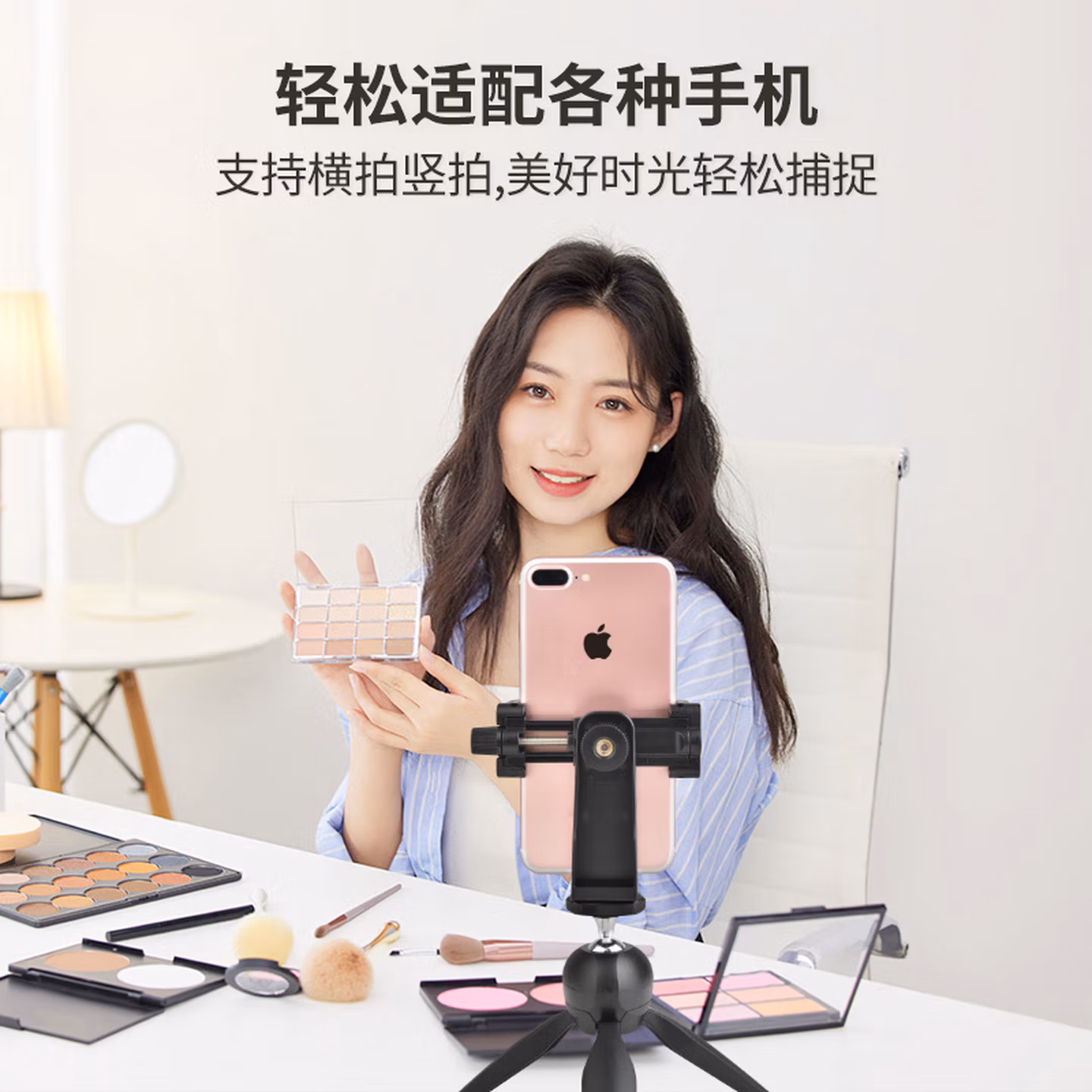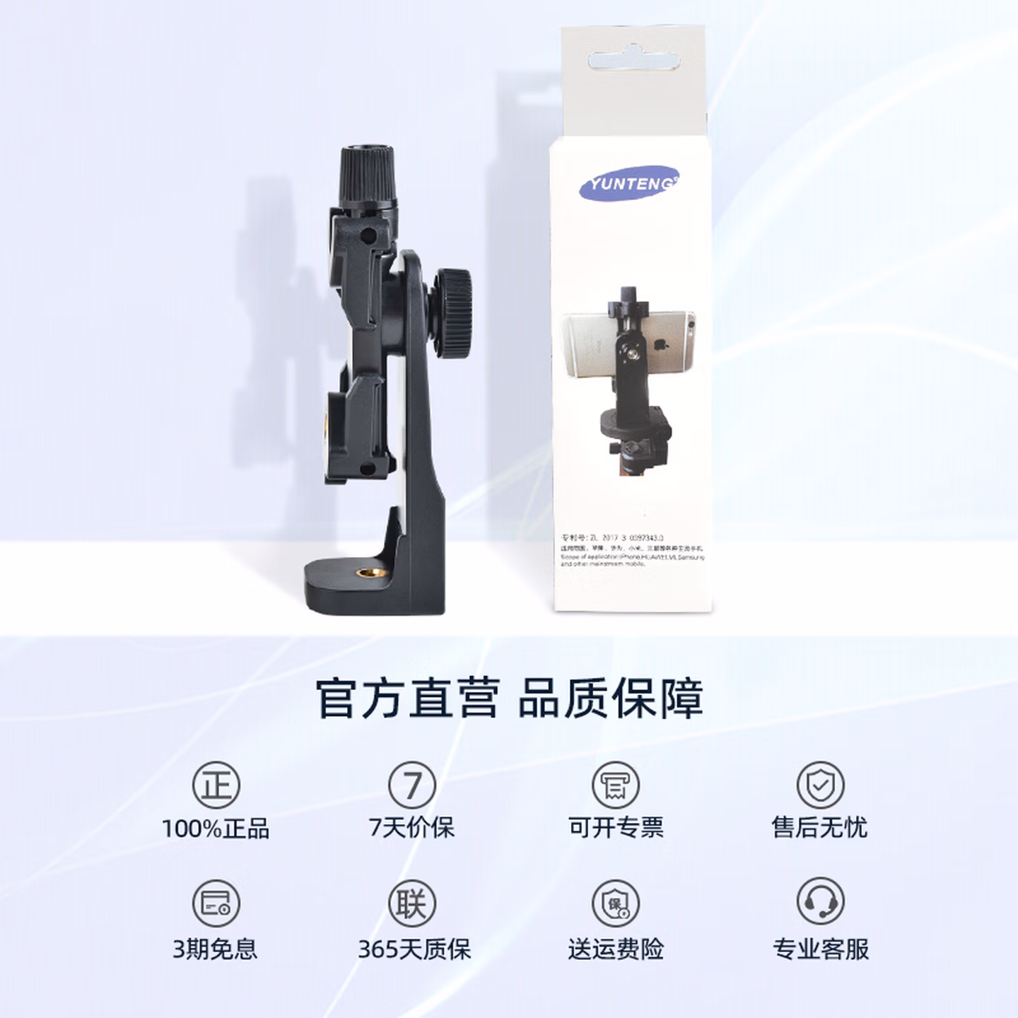 云腾横竖拍旋转手机夹通用1/4螺丝三脚架云台转接固定夹ABS材料稳固耐用横竖快速调整通用绝大部分手机