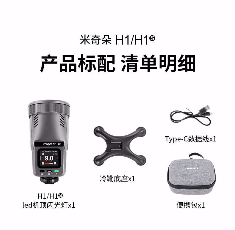 金贝(JINBEI)H1圆头led机顶闪光灯相机拍照补光灯单反微单复合热靴双色温常亮补光灯高速TTL便携外拍灯户外离机 【宝石黑】H1单灯标配 通用版(适用佳能/尼康/富士/松下/奥林巴斯相机)