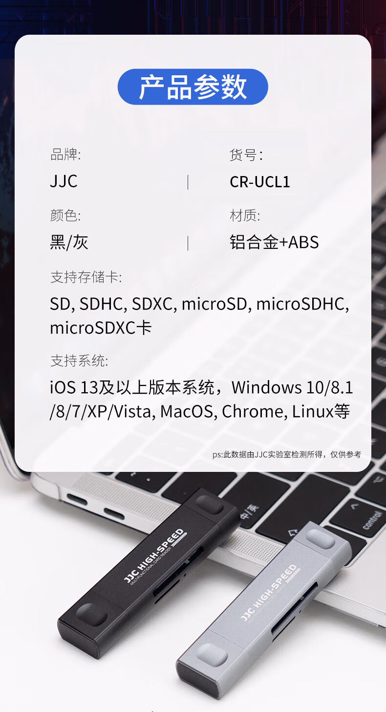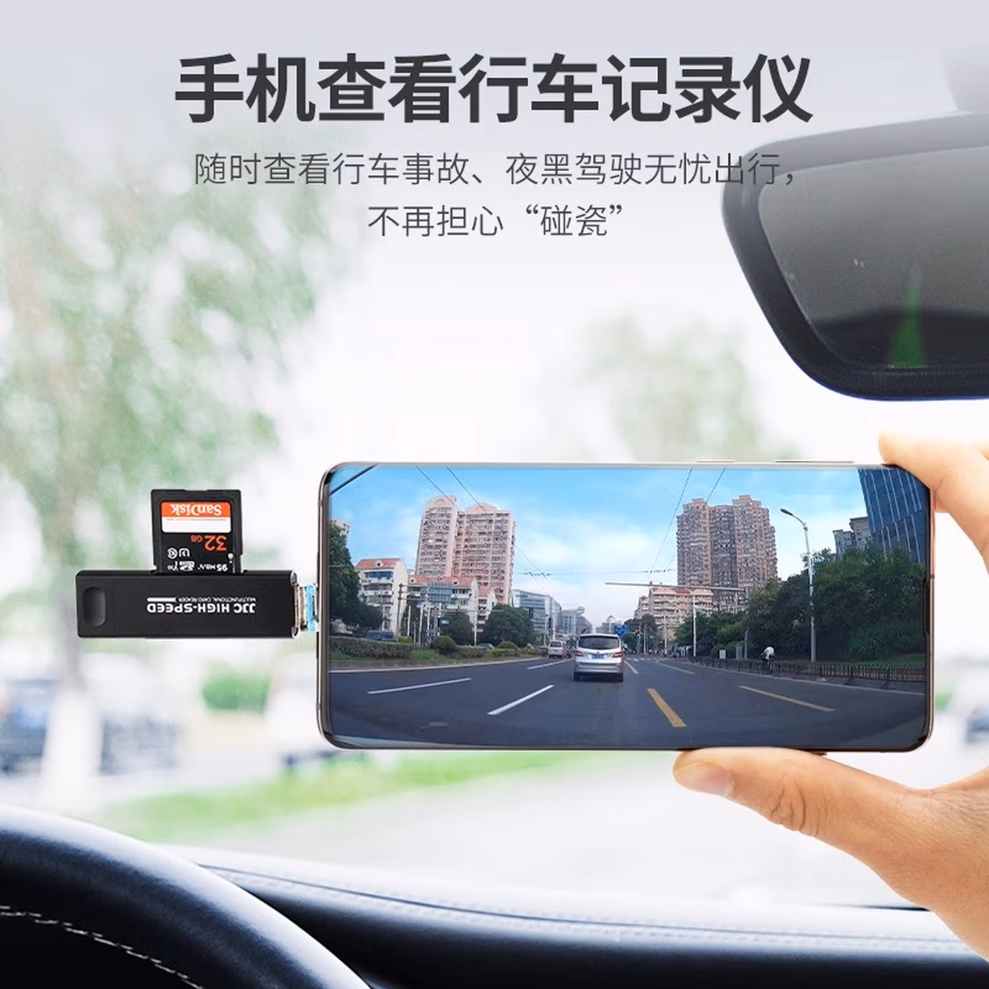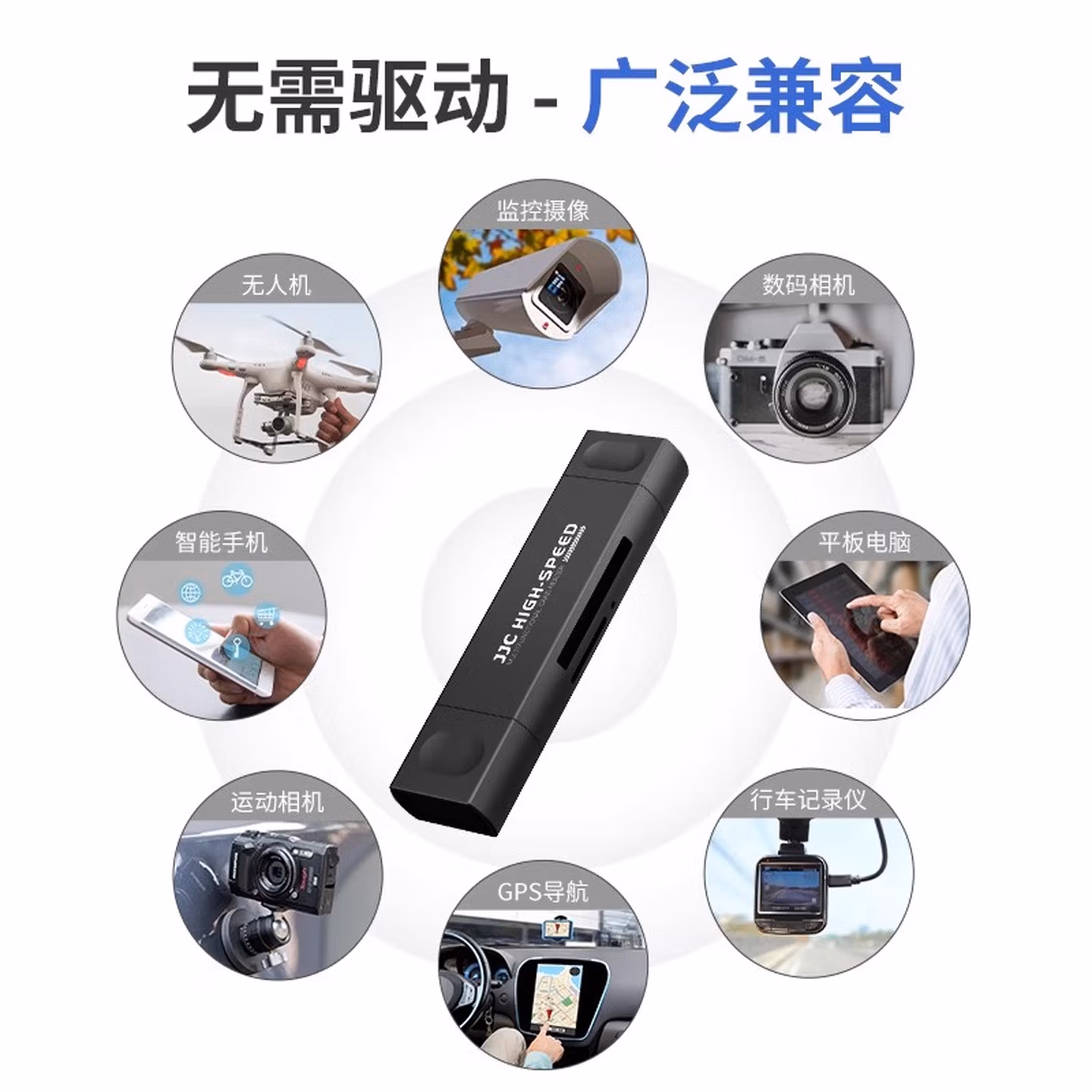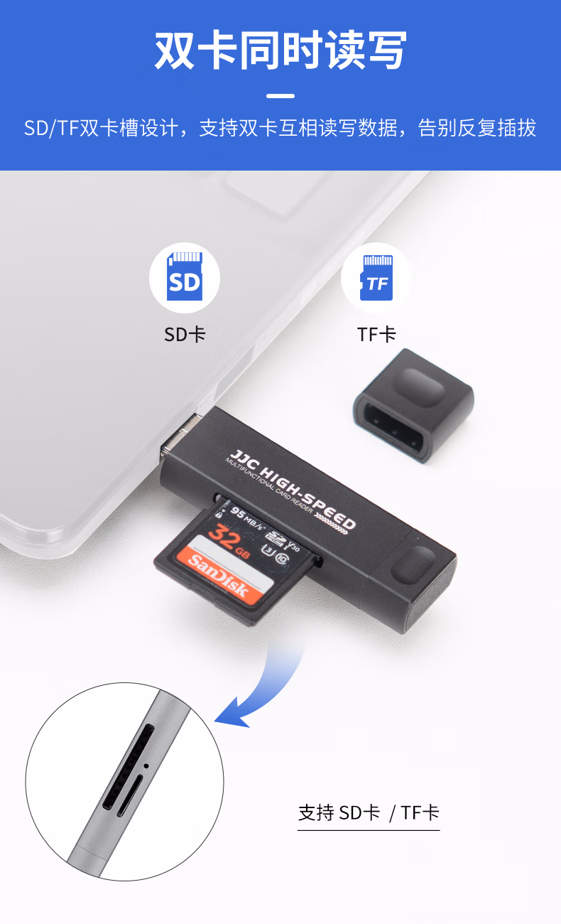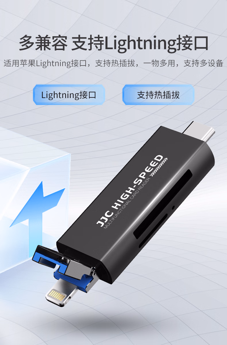 > JJC 高速读卡器 适用于苹果手机iPhone16/15/14/13Pro华为SD/TF卡USB相机iPad内存卡转换外接存储读取 商务灰 Lightning+USB+Type-C口