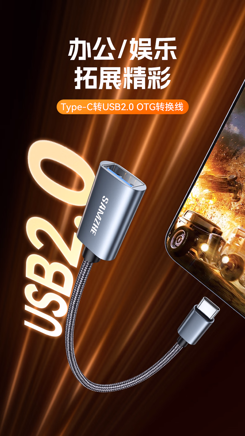 山泽 Type-c转换USB转接头OTG数据线 转换器接U盘键鼠适用苹果17/16/15华为手机ipad平板笔记本CAL21-1