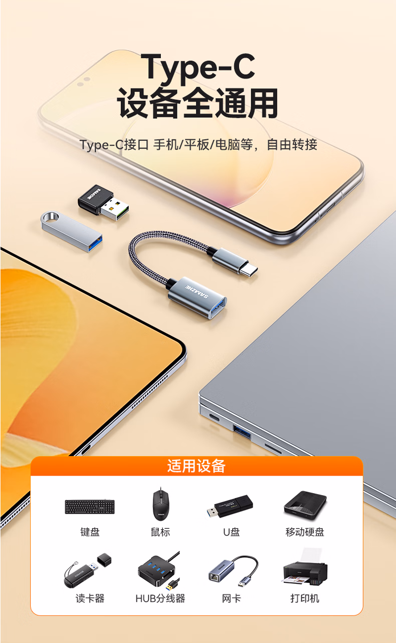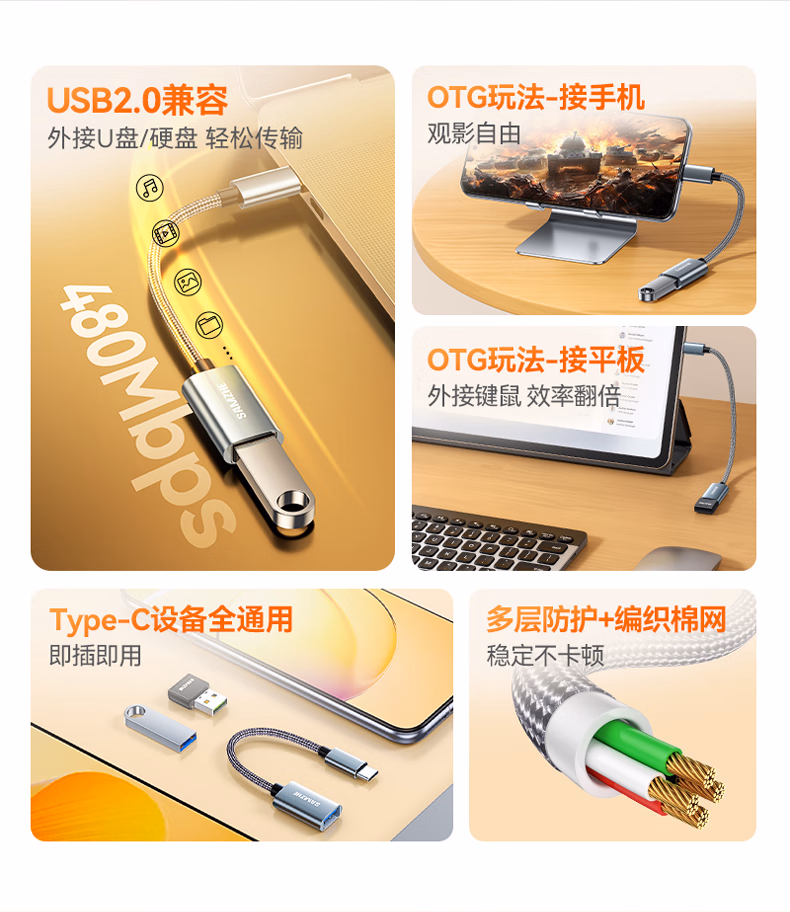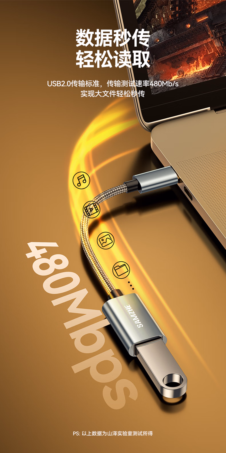> 山泽 Type-c转换USB转接头OTG数据线 转换器接U盘键鼠适用苹果17/16/15华为手机ipad平板笔记本CAL21-1