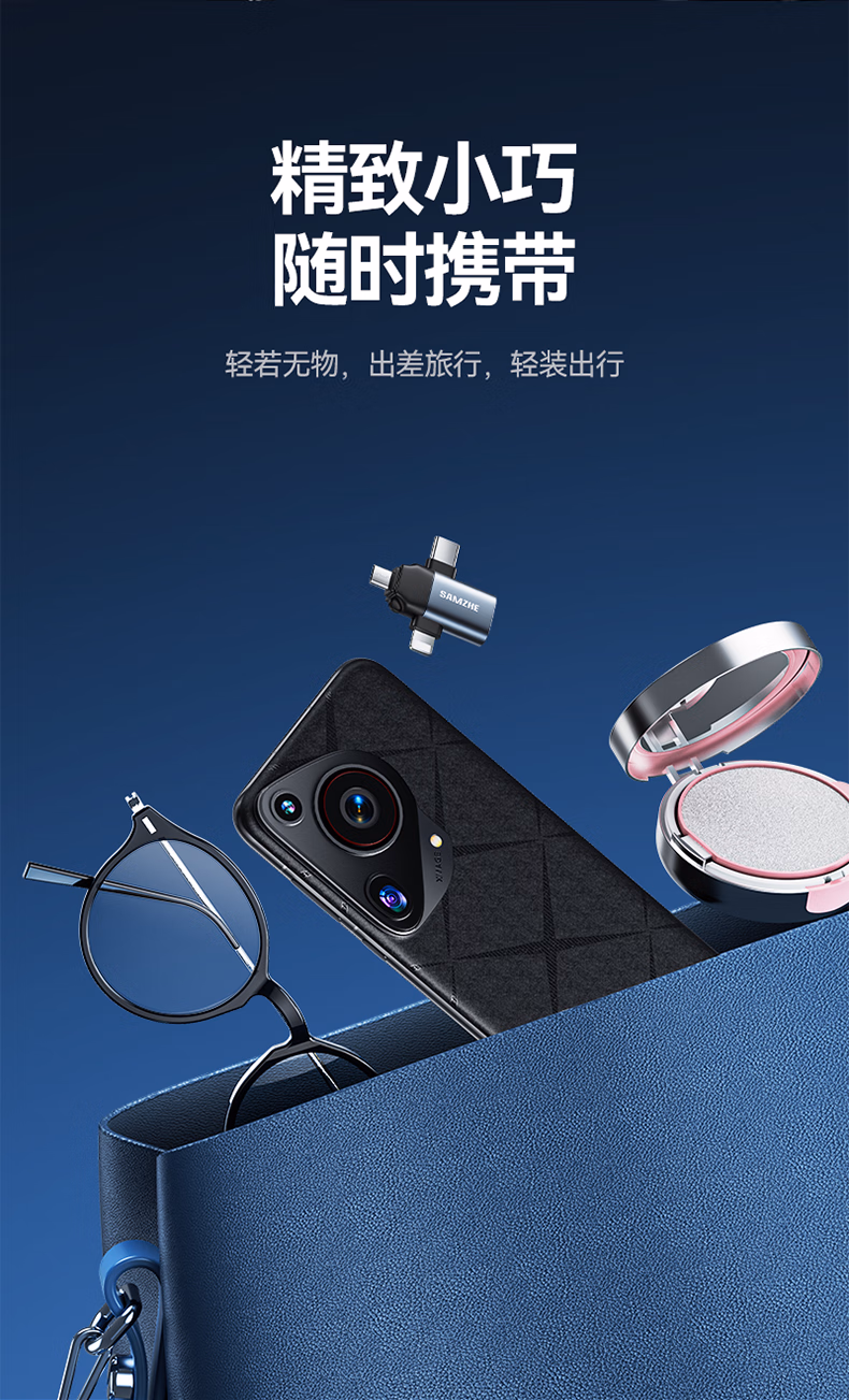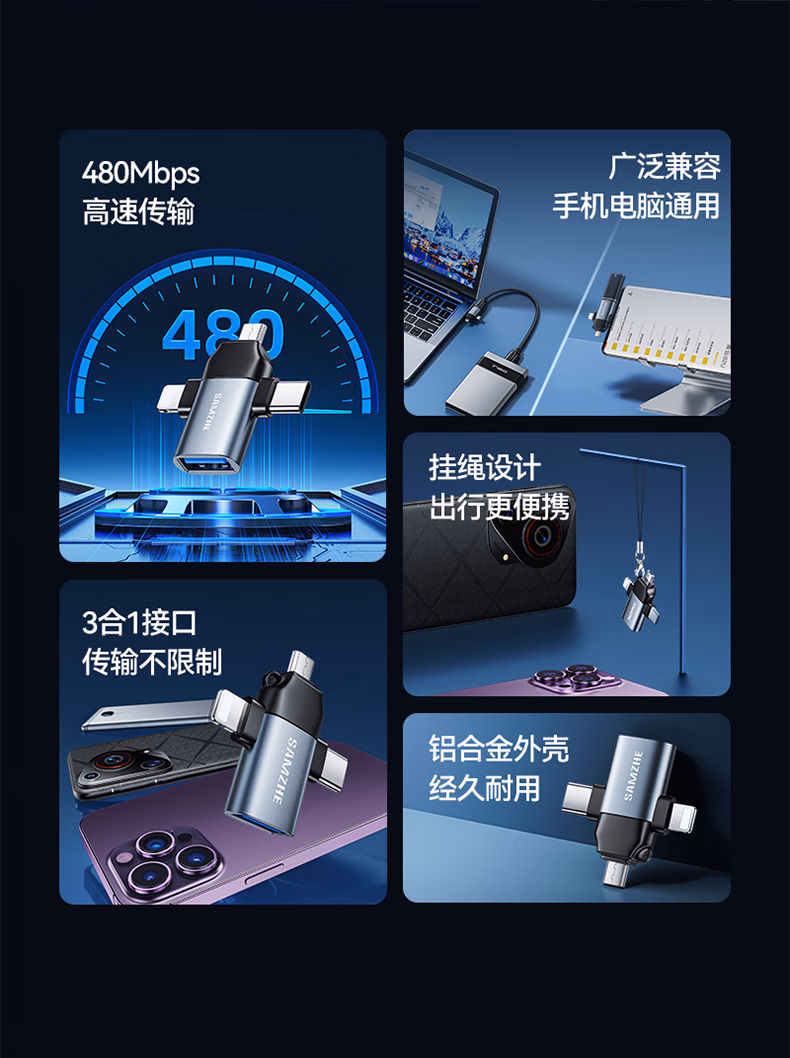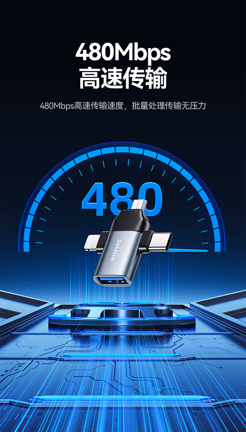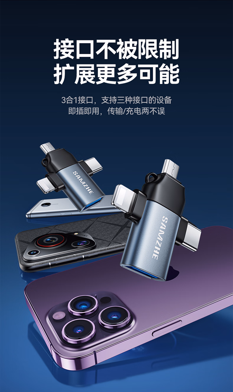 > 山泽 OTG转接头三合一苹果Type-C安卓手机外接U盘键鼠USB转换器转接器适用iphone16/15promax平板电脑