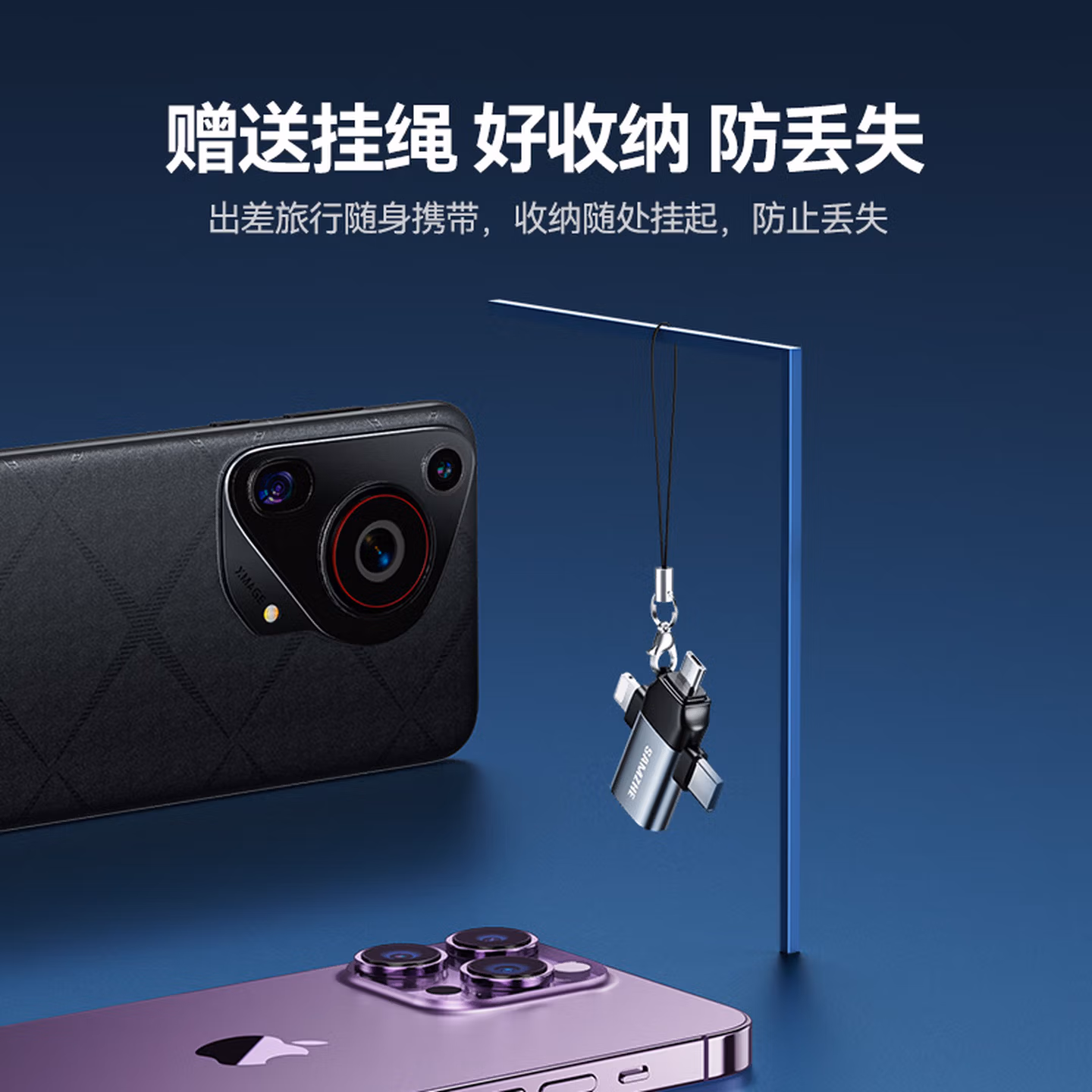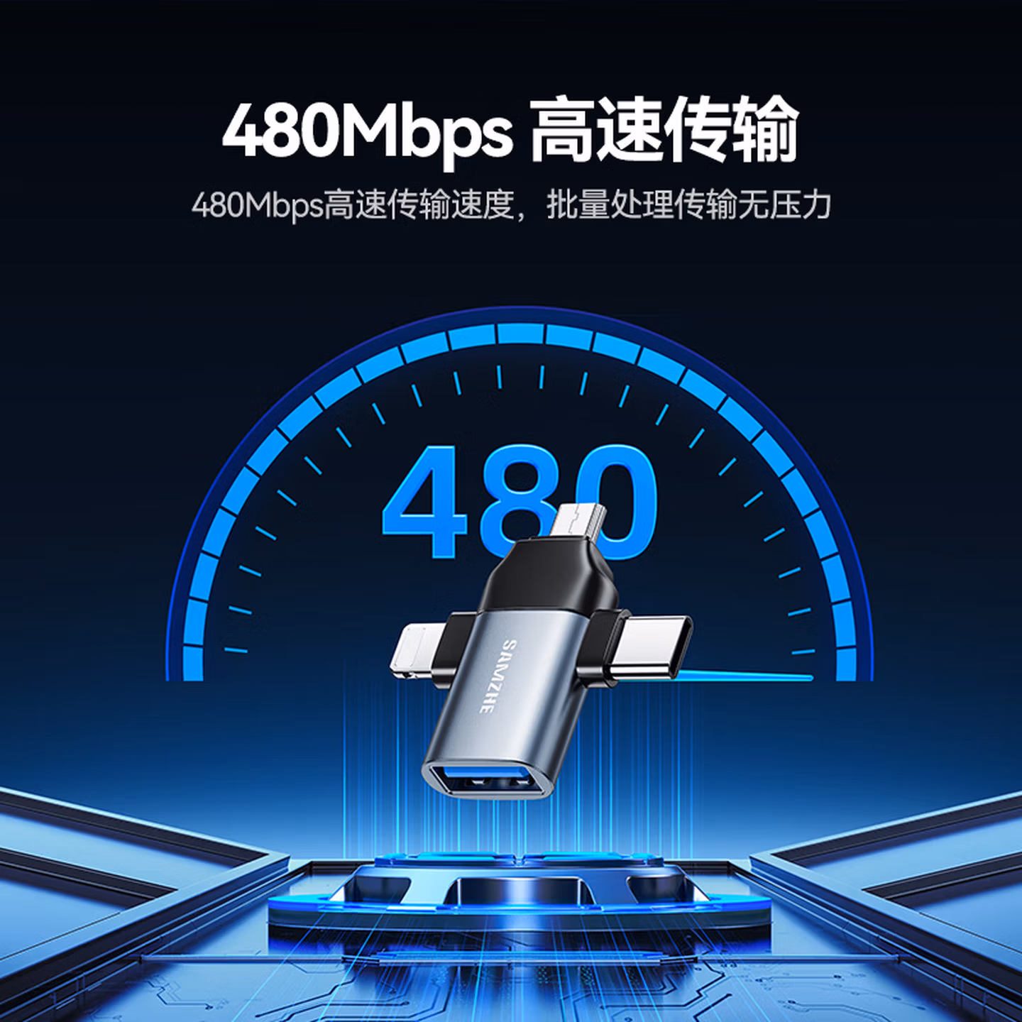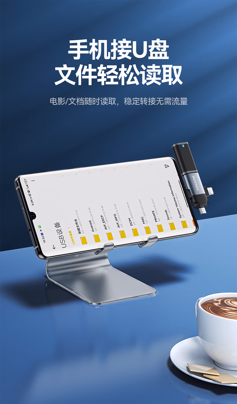 > 山泽 OTG转接头三合一苹果Type-C安卓手机外接U盘键鼠USB转换器转接器适用iphone16/15promax平板电脑