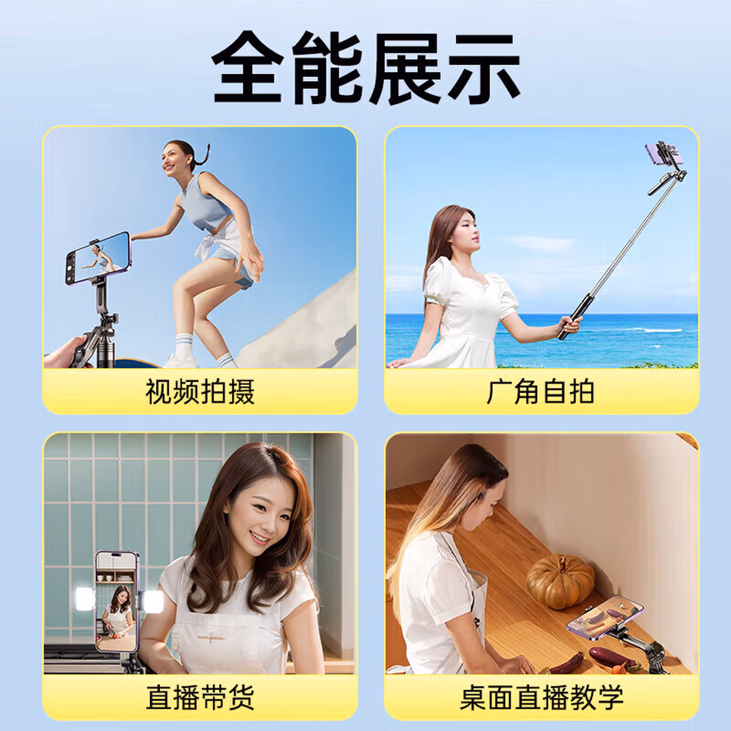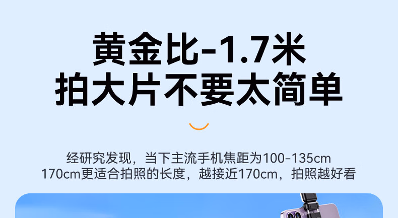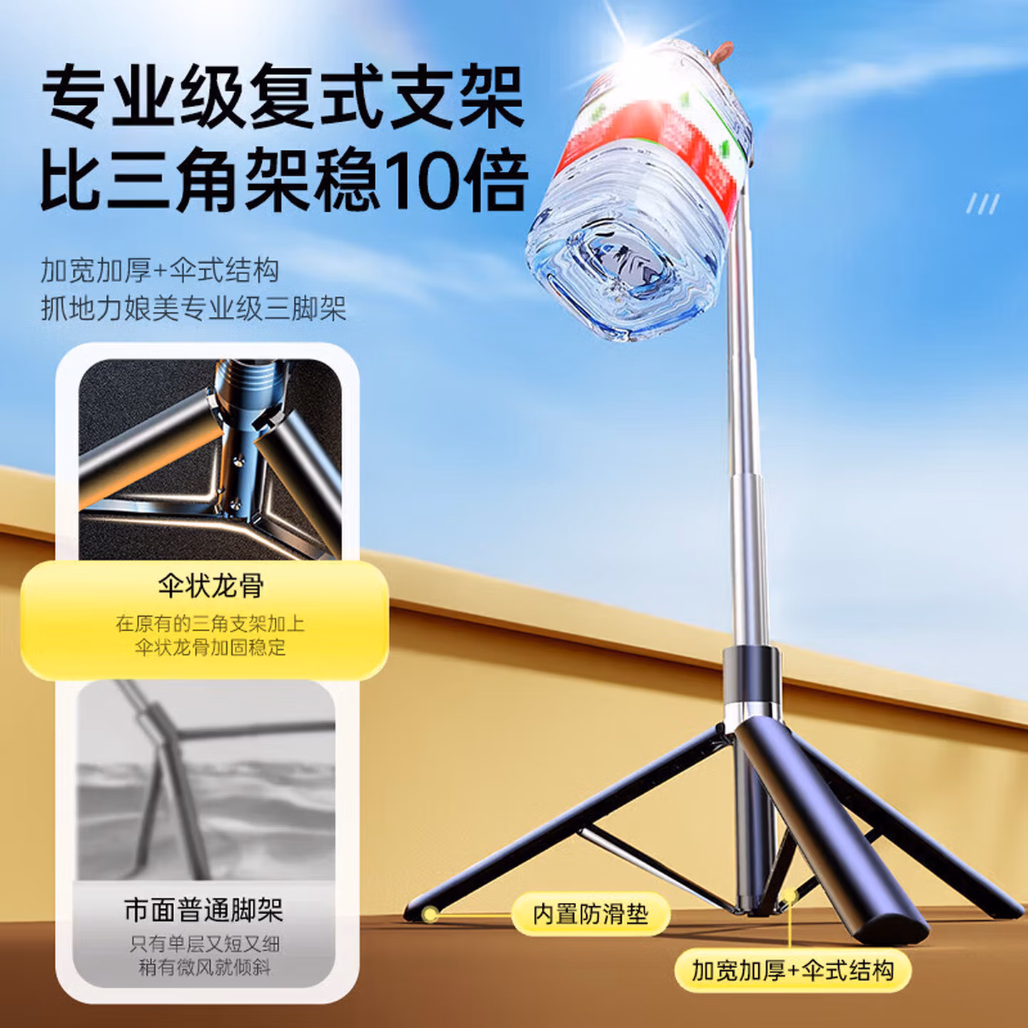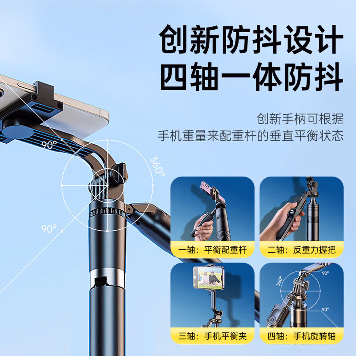 > 索盈【1.8米超广角】自拍杆便携式旅游手机支架落地直播三脚架演唱会拍摄神器360度旋转防抖三轴云台