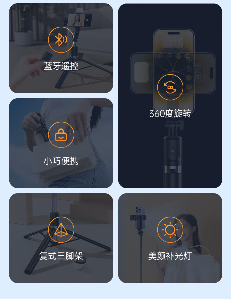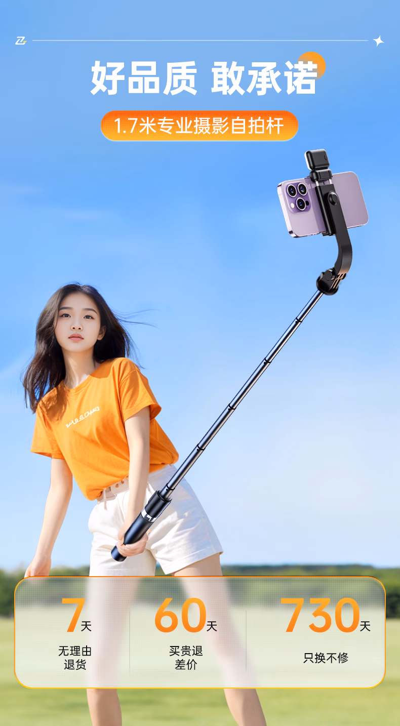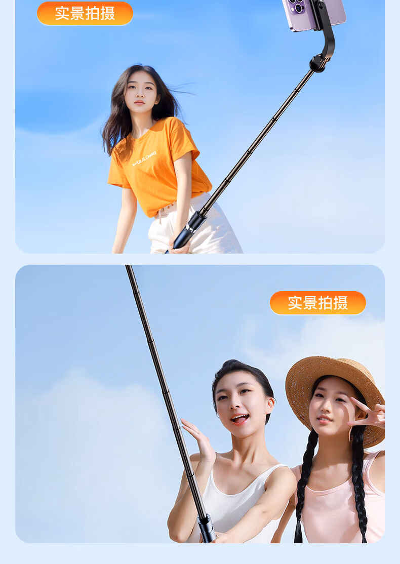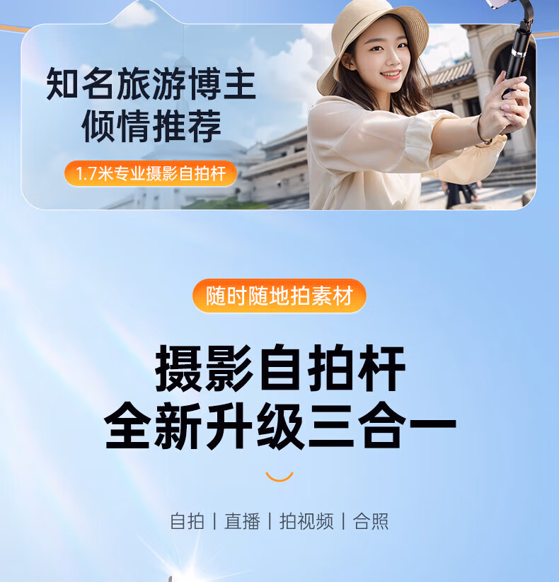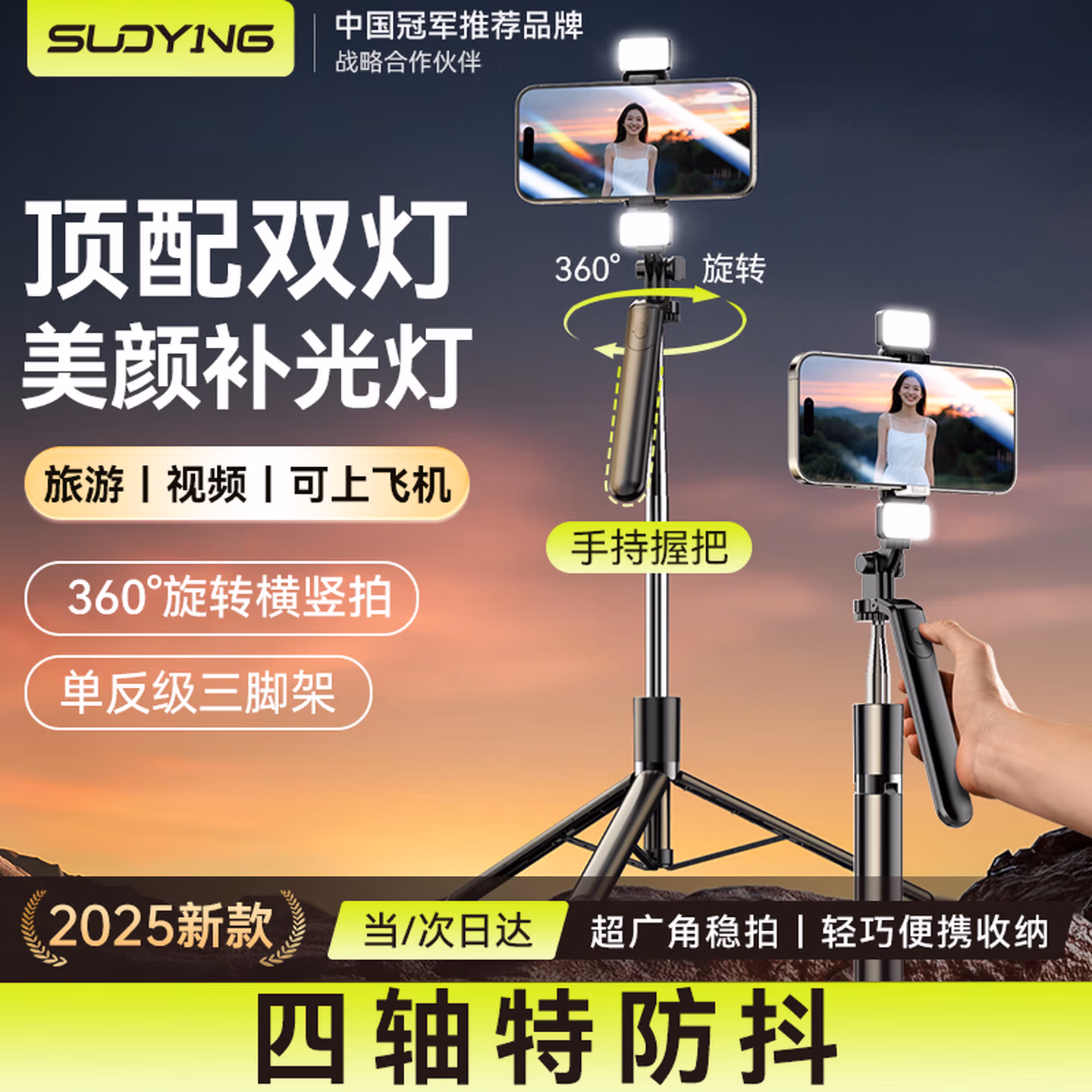 > 索盈【1.8米超广角】自拍杆便携式旅游手机支架落地直播三脚架演唱会拍摄神器360度旋转防抖三轴云台