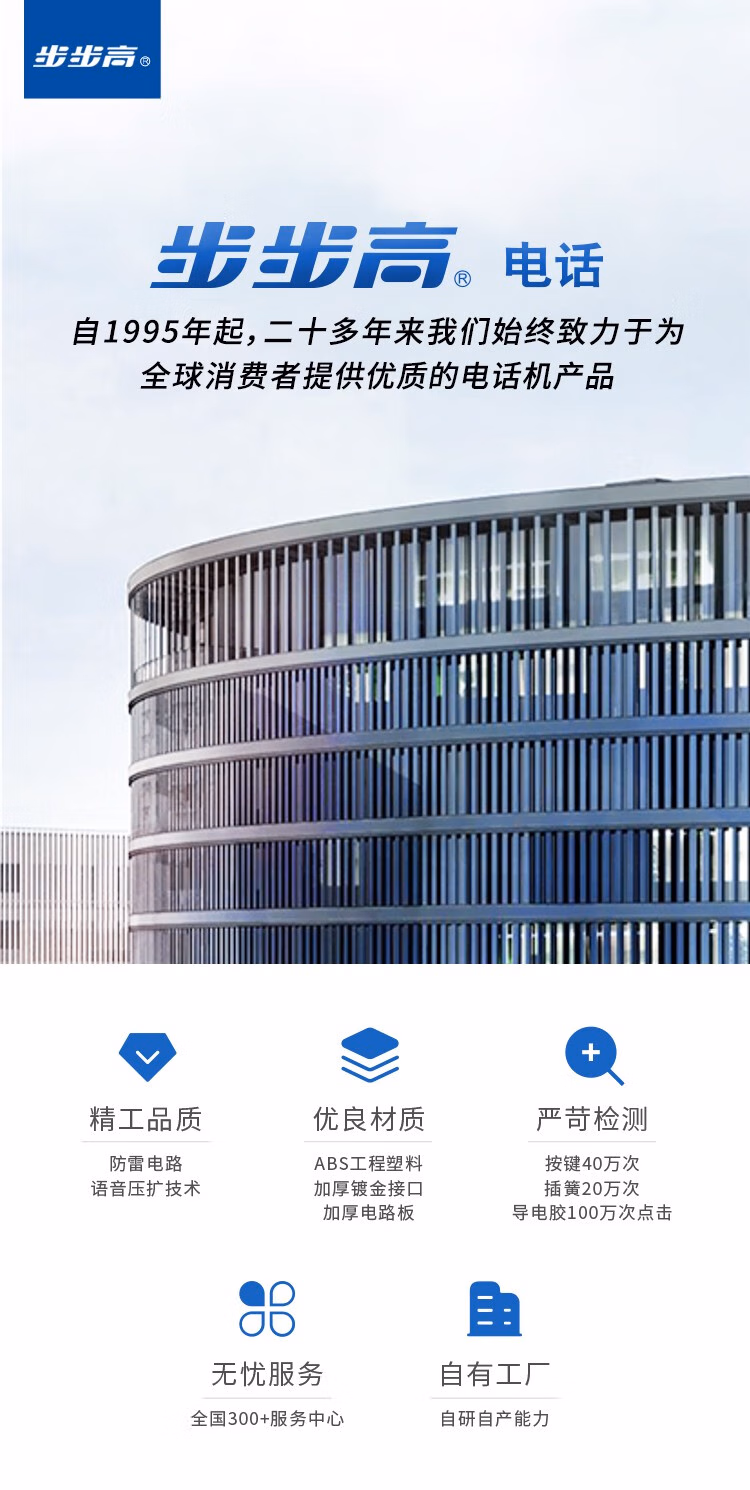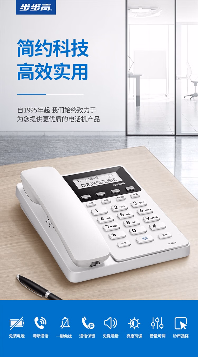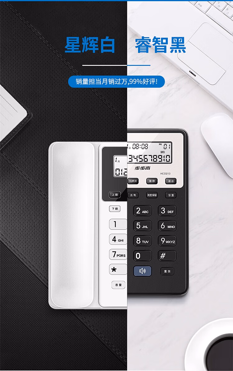 > 步步高步步高 HCD213 电话机座机 固定电话 办公家用 免电池 一键免扰 213 睿智黑