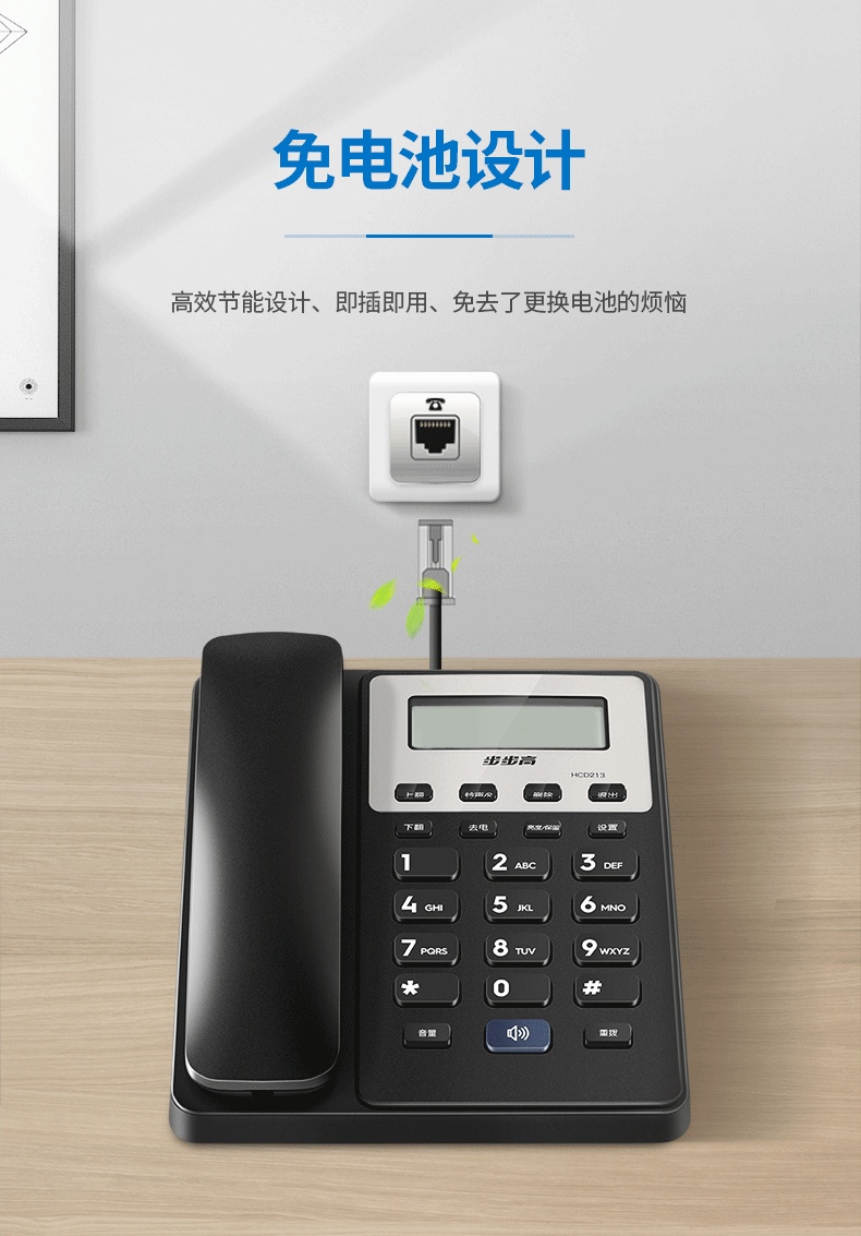 步步高步步高 HCD213 电话机座机 固定电话 办公家用 免电池 一键免扰 213 睿智黑