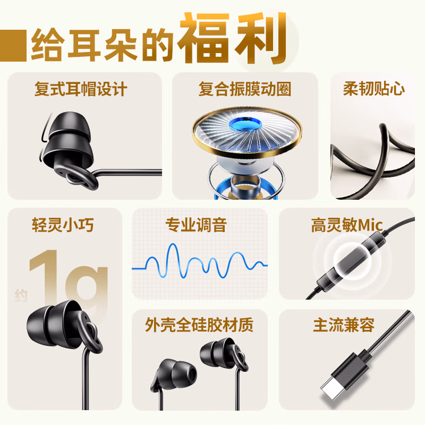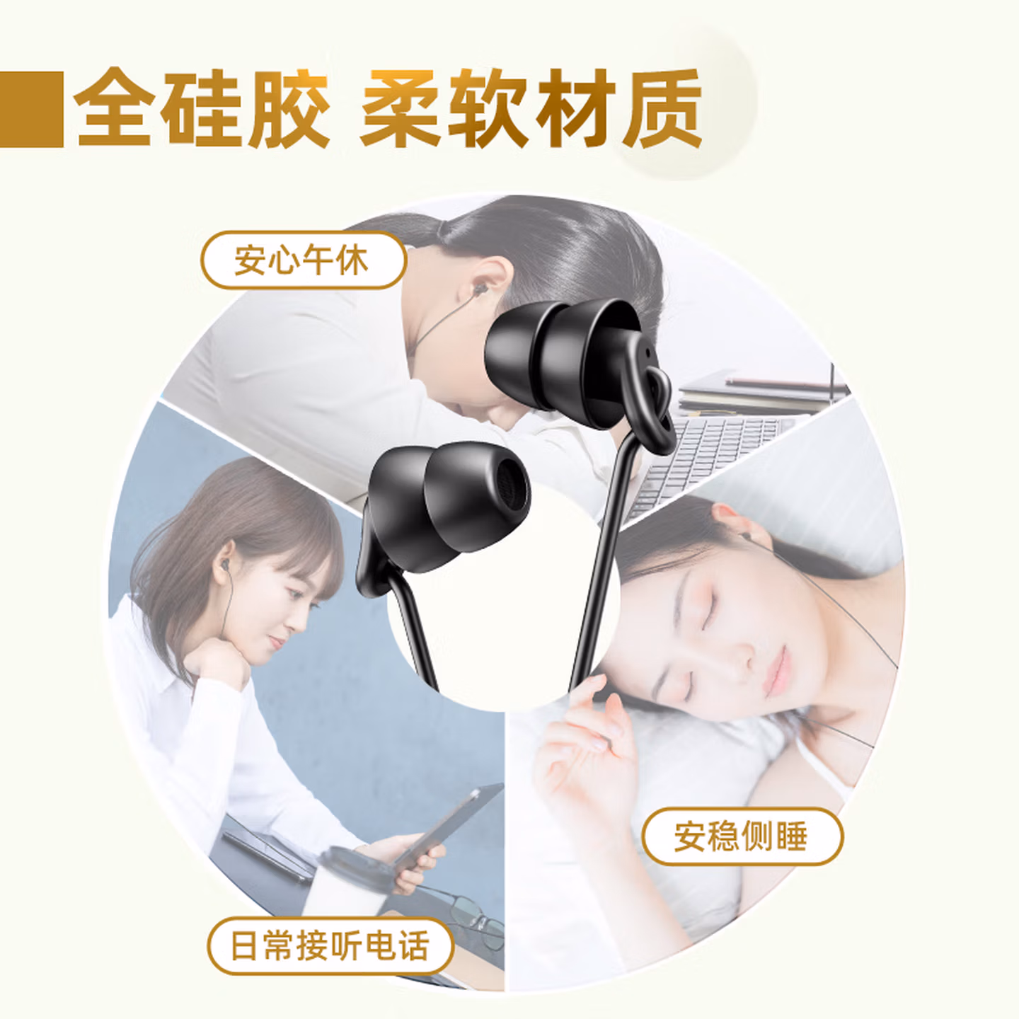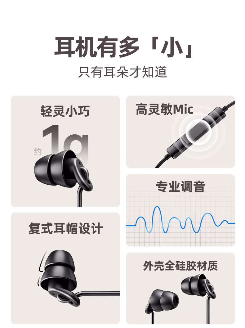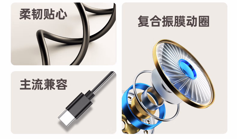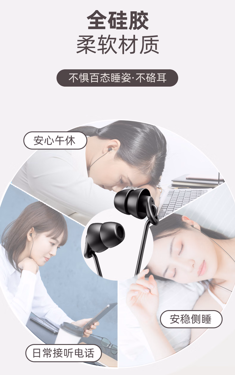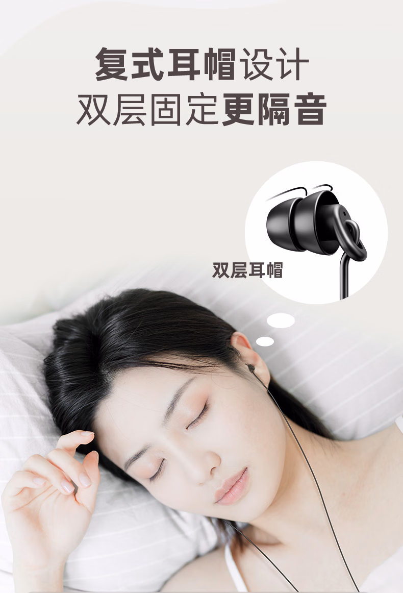 > 爱国者(aigo)睡眠耳机半入耳式睡觉助眠侧睡不压耳隔音降噪有线耳机Type-c接口扁口线控耳机运动跑步音乐A260D