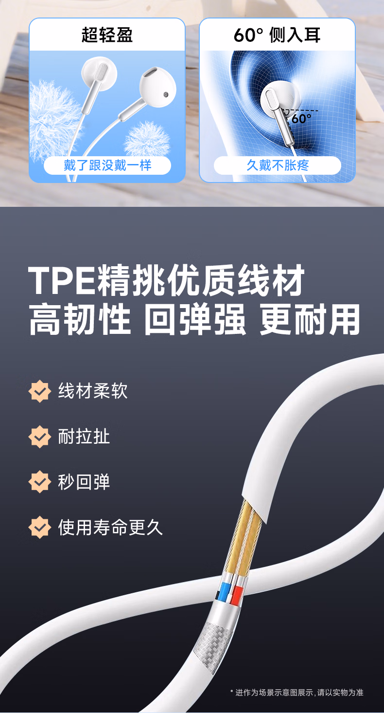 > 爱国者(aigo)高清原声通话3.5mm耳机有线圆孔睡眠电脑入耳式带线笔记本手机游戏台式插孔适用于苹果安卓A160