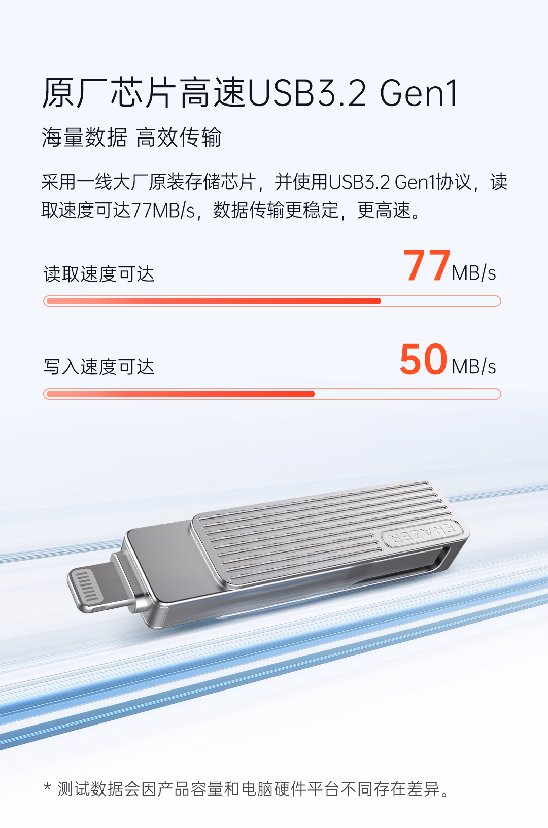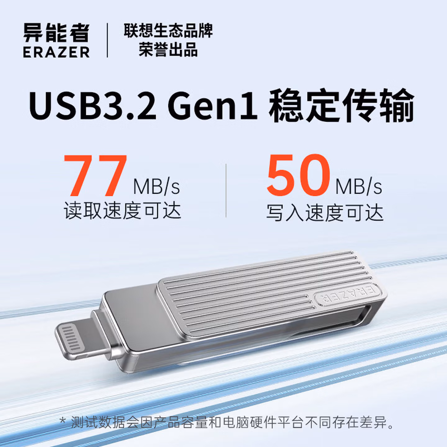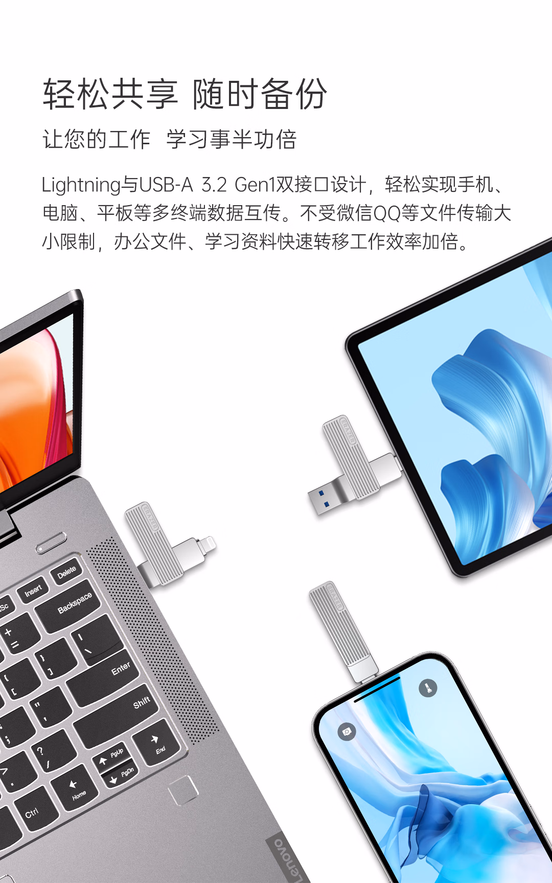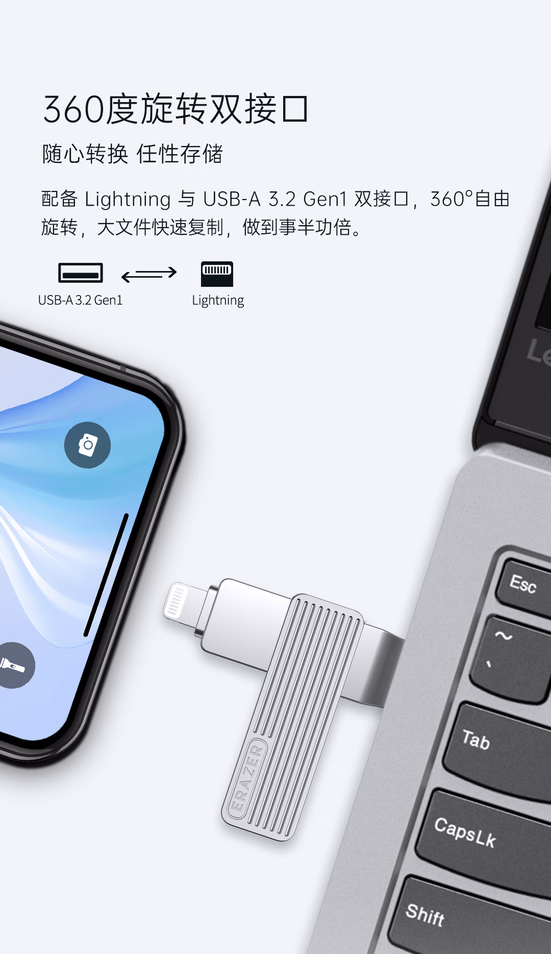 > 联想(Lenovo)生态品牌异能者128GB USB3.2 Lightning双接口苹果手机U盘F510 金属旋转防护 手机电脑两用优盘