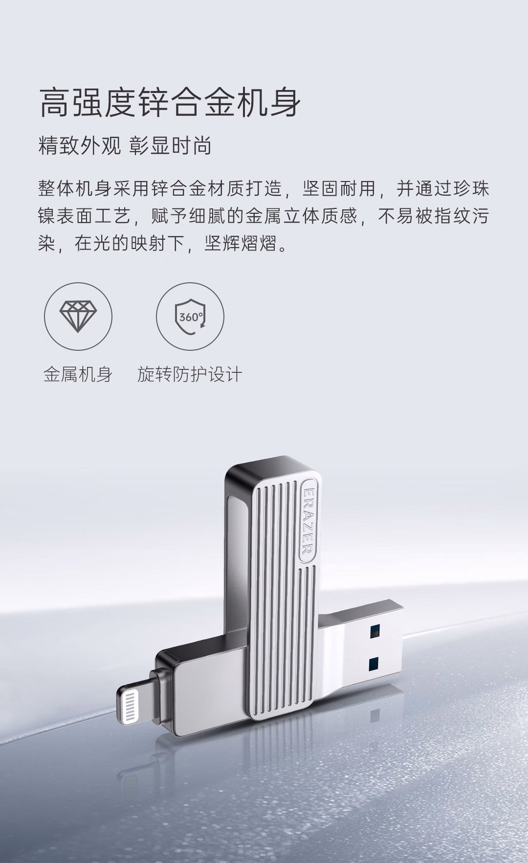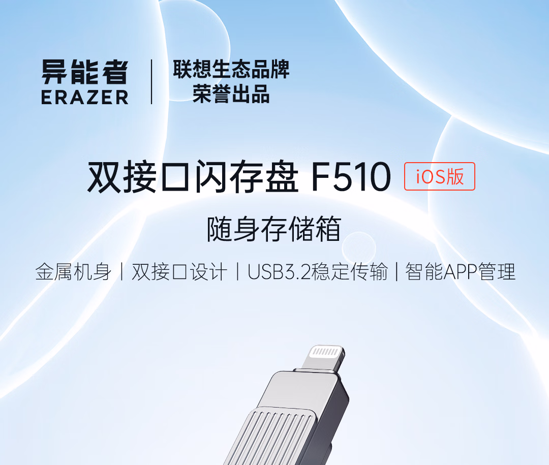 联想(Lenovo)生态品牌异能者128GB USB3.2 Lightning双接口苹果手机U盘F510 金属旋转防护 手机电脑两用优盘