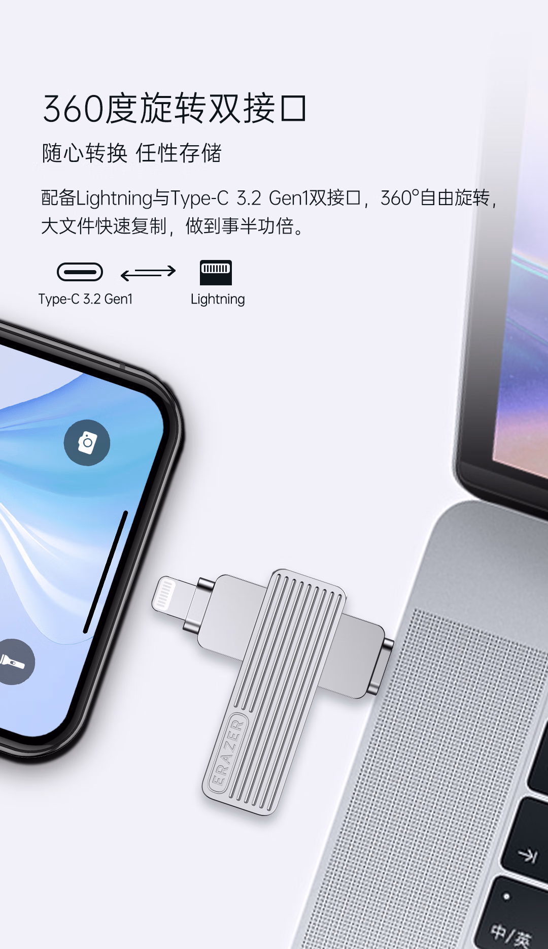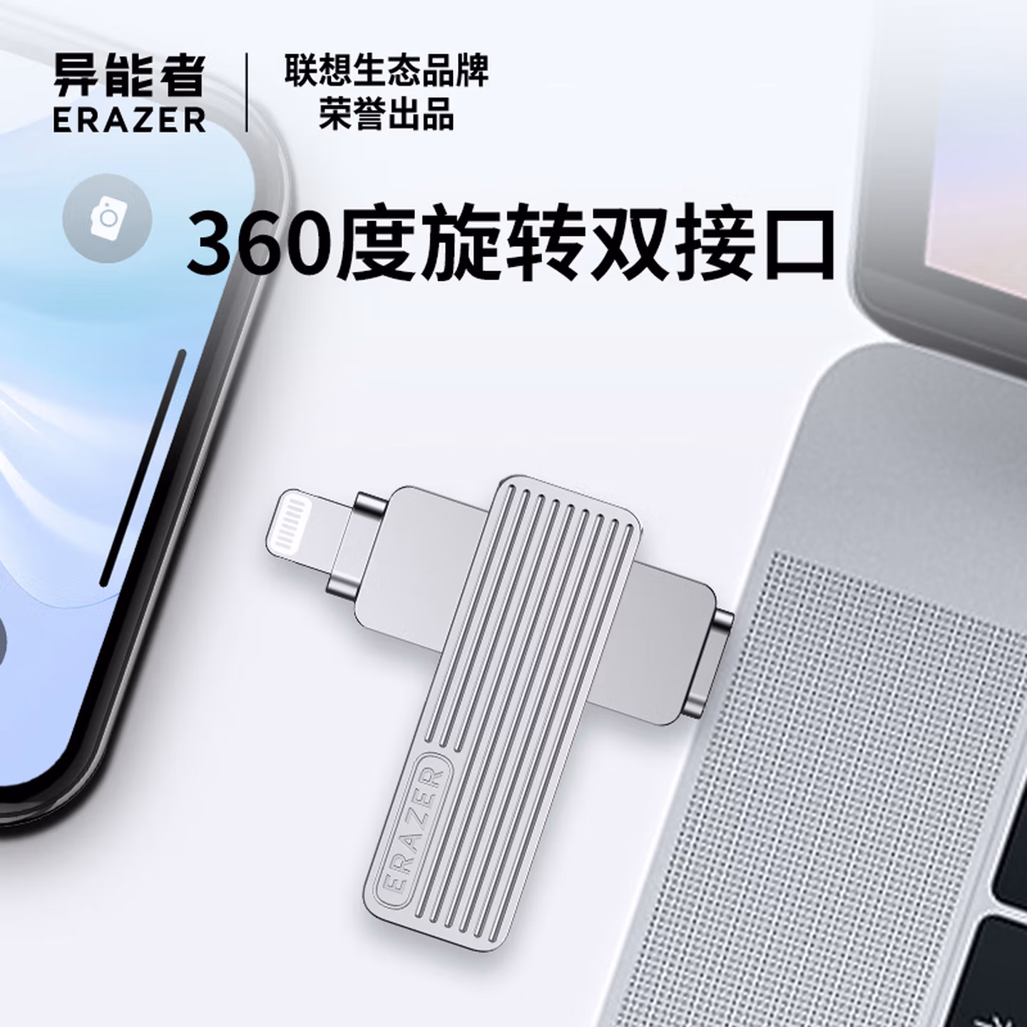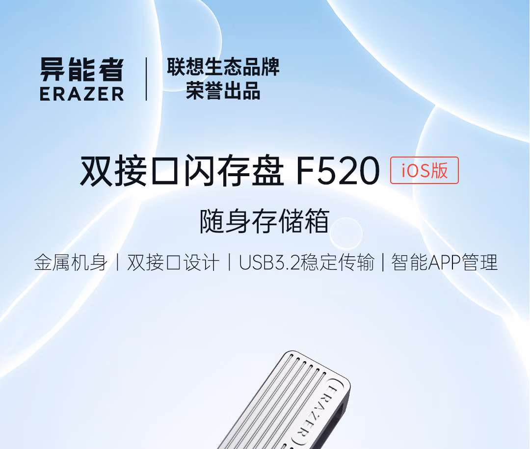 > 联想(Lenovo)生态品牌异能者 512GB Type-C Lightning双接口 USB3.2苹果手机U盘F520一键备份安卓苹果通用优盘