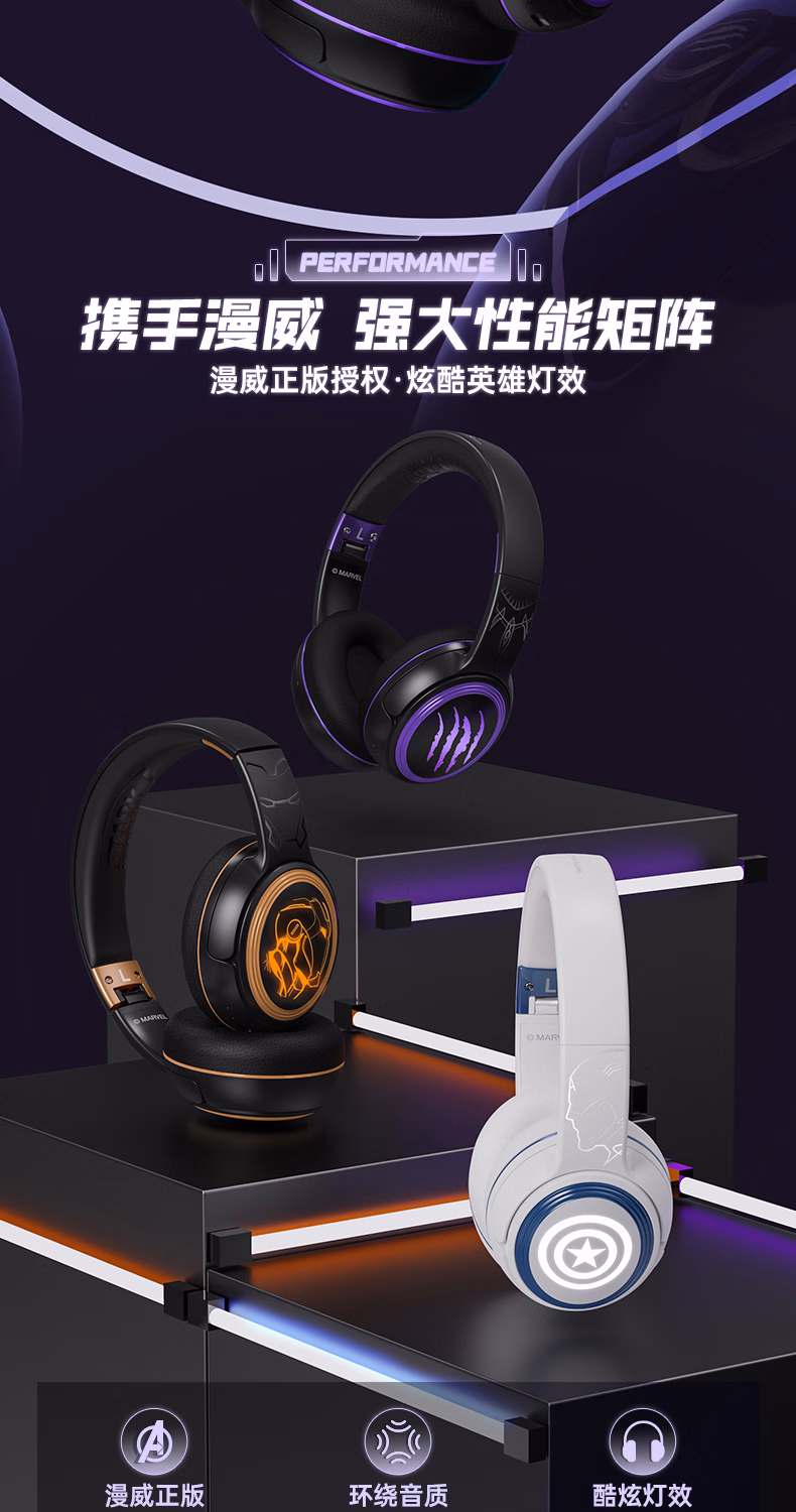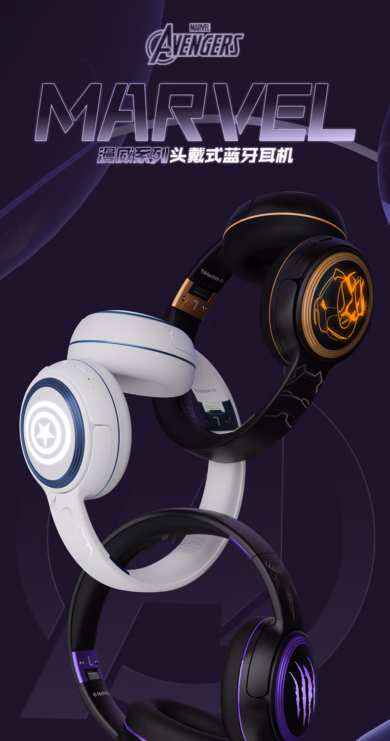 > 迪士尼(DISNEY)漫威联名无线蓝牙耳机头戴式带耳麦电竞音乐运动耳机长续航 教师生日礼物男生 MR13美国队长