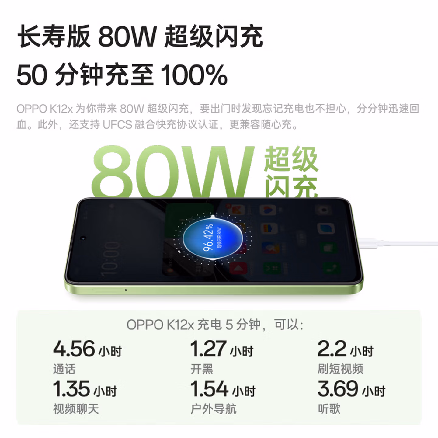 > OPPOOPPO K12x OLED直屏 80W闪充 5500mAh大电池 120Hz 骁龙5G手机 凝光绿 8GB+256GB