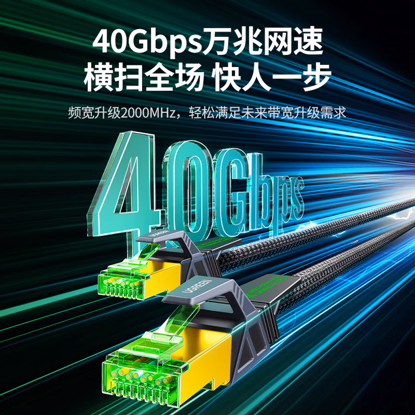 > 绿联 八类纯铜网线 CAT8类万兆屏蔽网络连接线 游戏电竞双绞线 家用电脑宽带成品跳线 扁线40175