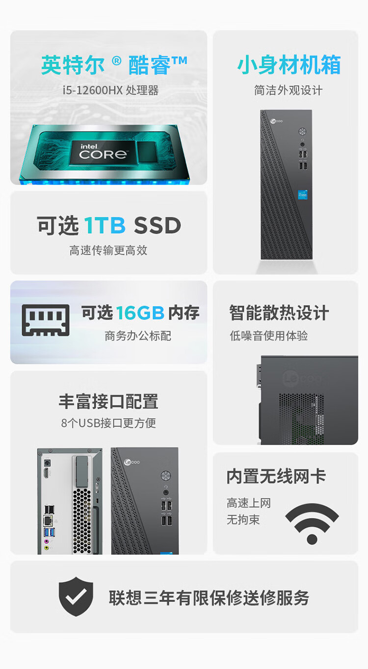 > 联想(Lenovo)来酷 Lecoo商务办公台式电脑主机(酷睿13代i7-13620H 16G 512G SSD )单主机