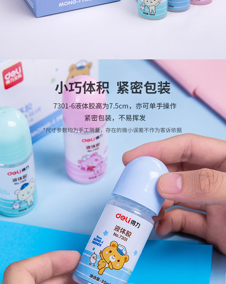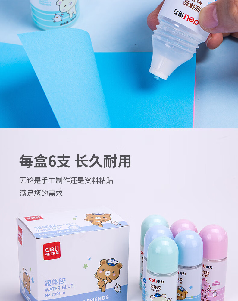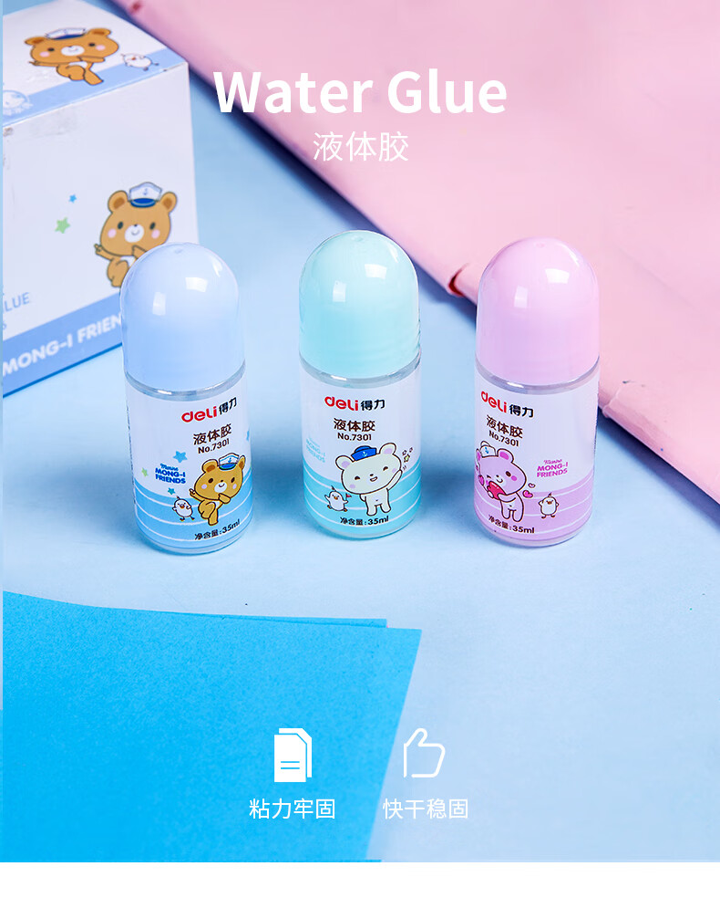 > 得力(deli)35ml高透明胶水 高粘度液体胶 可水洗手工滴胶儿童胶水 颜色随机 单支装凑单 7301