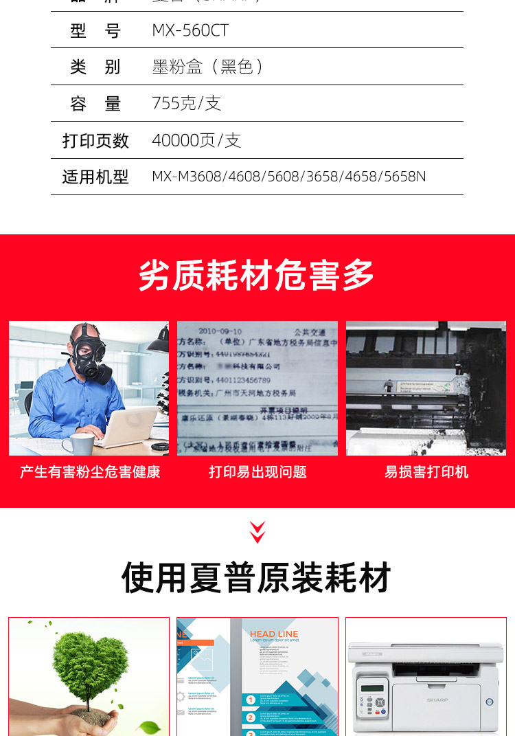 > 夏普(SHARP)MX-561CT 黑色墨粉(适用MX-M3068/3658/4068/4658-NC/B4621/5621-R机型)约40000页