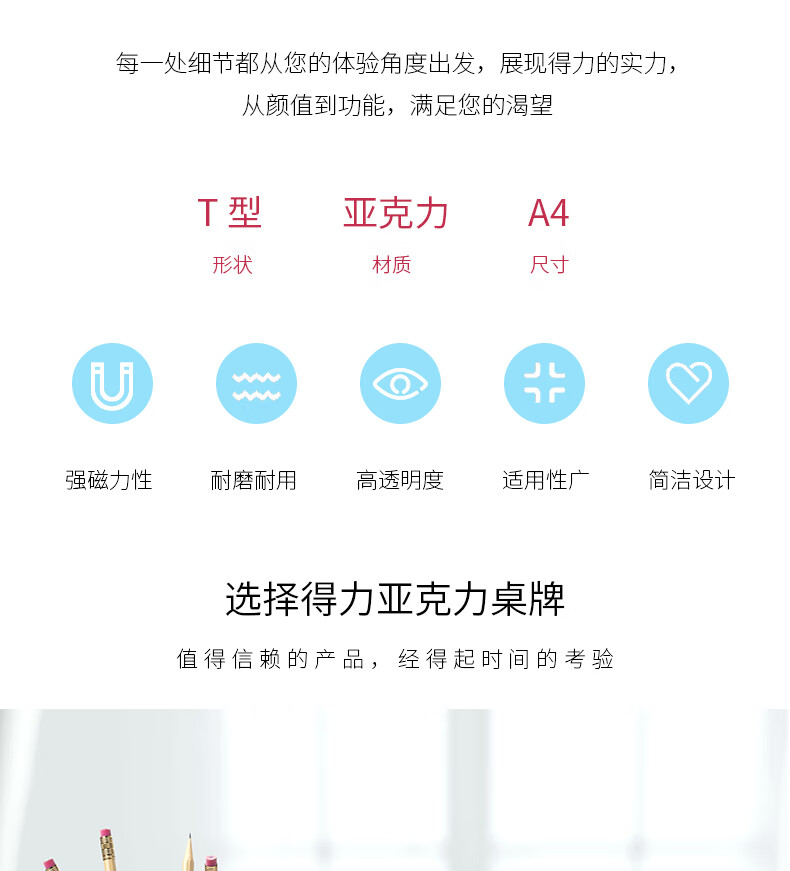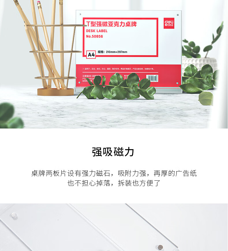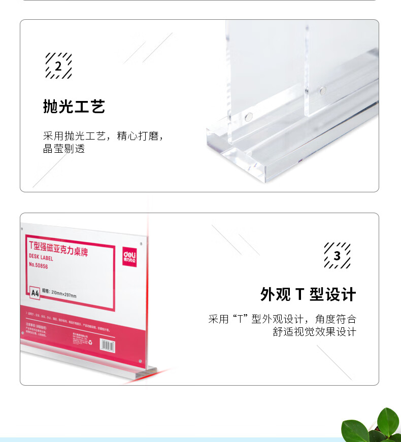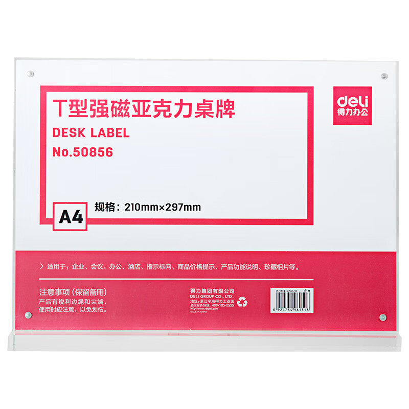 > 得力(deli)T型210*297mm高档亚克力 立牌/展示牌 会议姓名牌座位牌席卡壳台签 学生/办公用品 50857