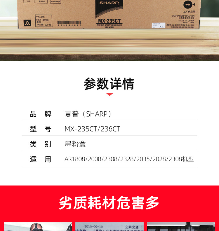 夏普(SHARP)MX-235CT 高容量黑色墨粉(适用AR-1808S/2008L/D/2308N/MX-M2028D/2328D机型)约16000页