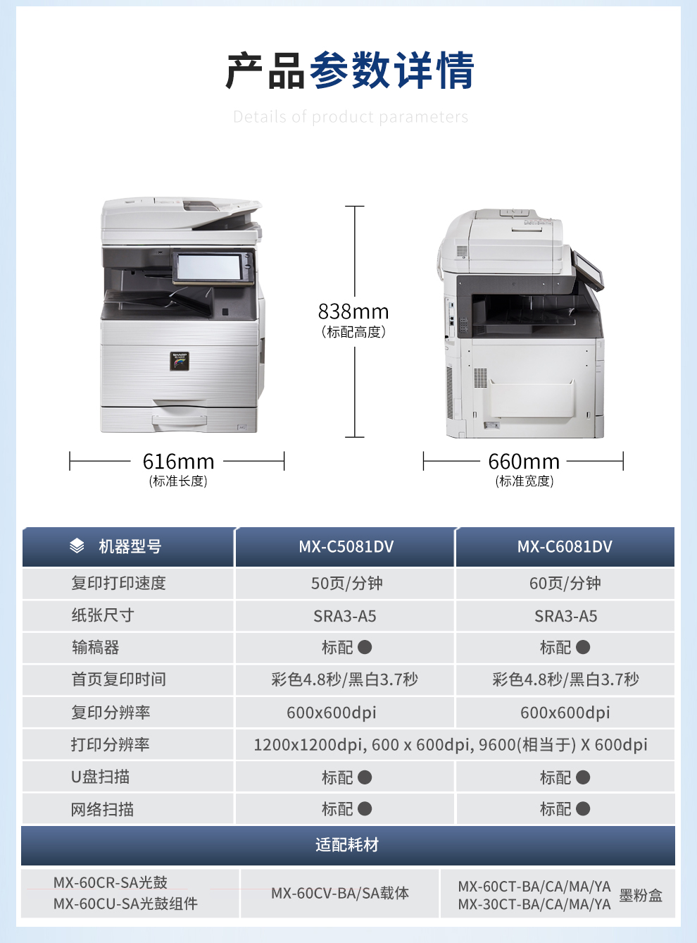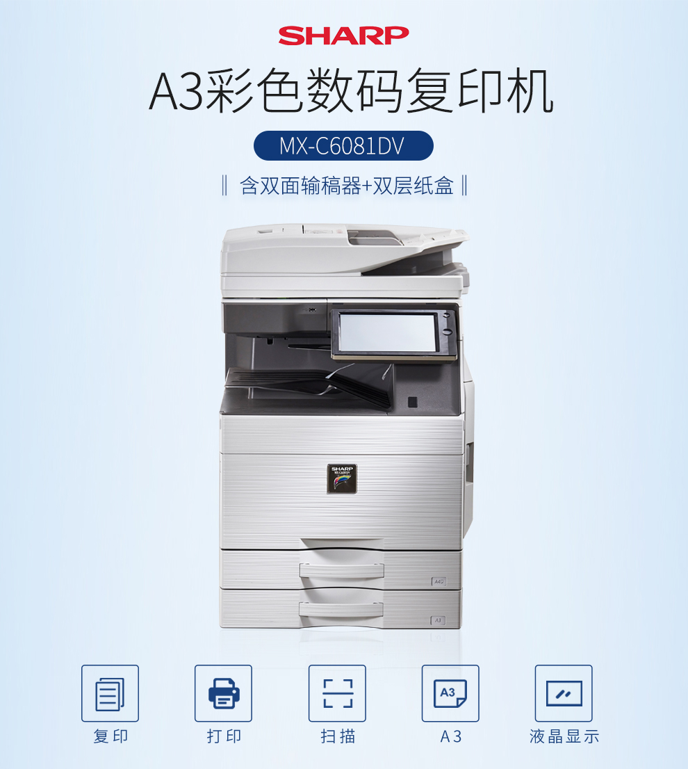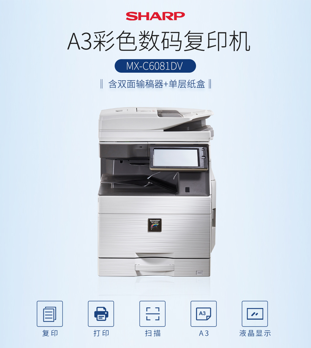 夏普(SHARP) MX-C6081DV 复印机 彩色多功能数码复合机 标配 (含双面输稿器 单层纸盒) 免费上门安装售后