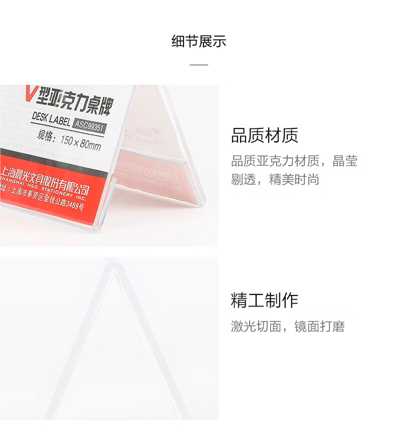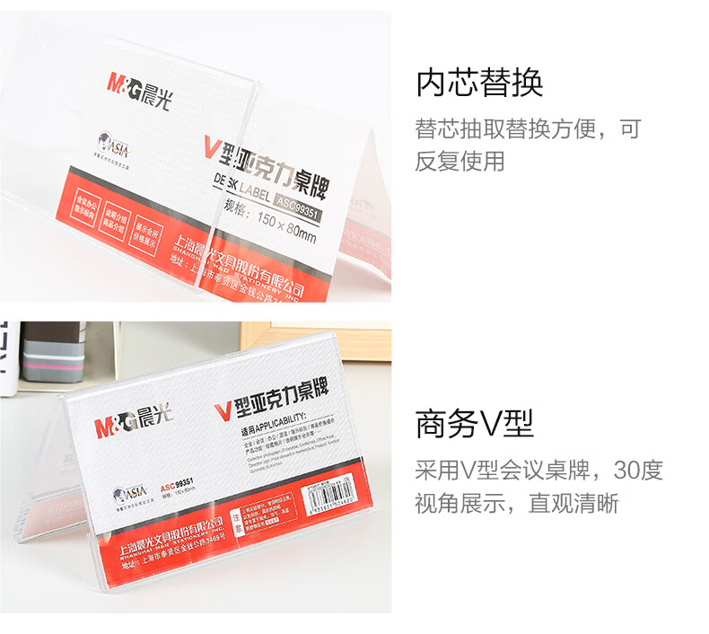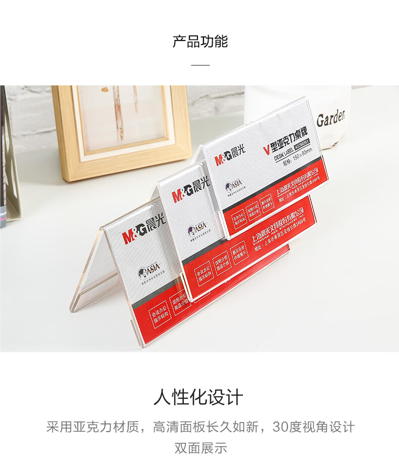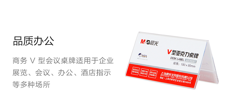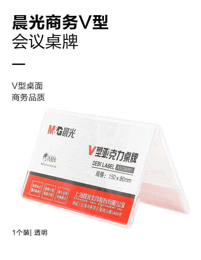 > 晨光(M&G)文具V型台卡? 150*80mm亚克力桌牌台签 会议席位卡 座位牌广告展示牌 单个装ASC99351