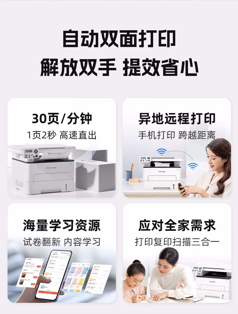 > 奔图(PANTUM)M6760DW 黑白激光多功能一体机 打印复印扫描有线无线网络双面打印 M6760D(有线连接)